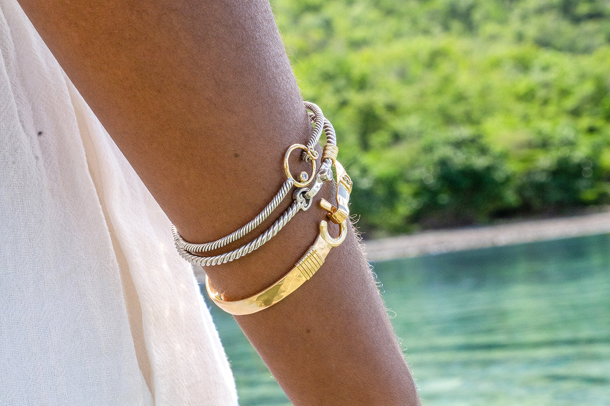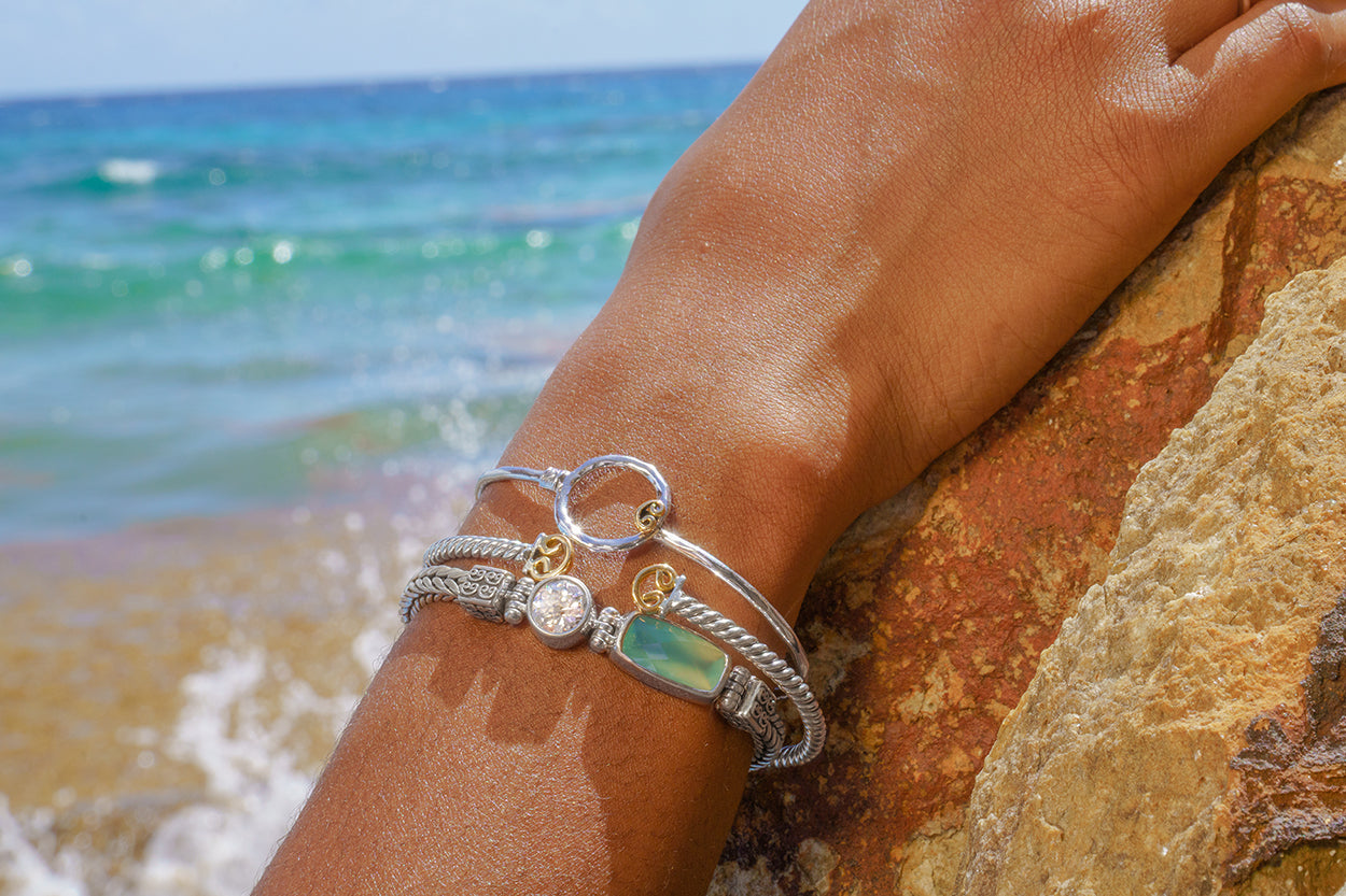Create an eye-catching stack by combining different types of bracelets. Mix bangles, cuffs, and link bracelets to add texture and interest to your wrist. Play with varying widths and styles for an effortlessly chic look. We recommend starting with a foundational bracelet that will serve as the anchor of your stack and provide a cohesive base. Once you have this, you can continue to add by considering metal tones, sizes, details and colors.