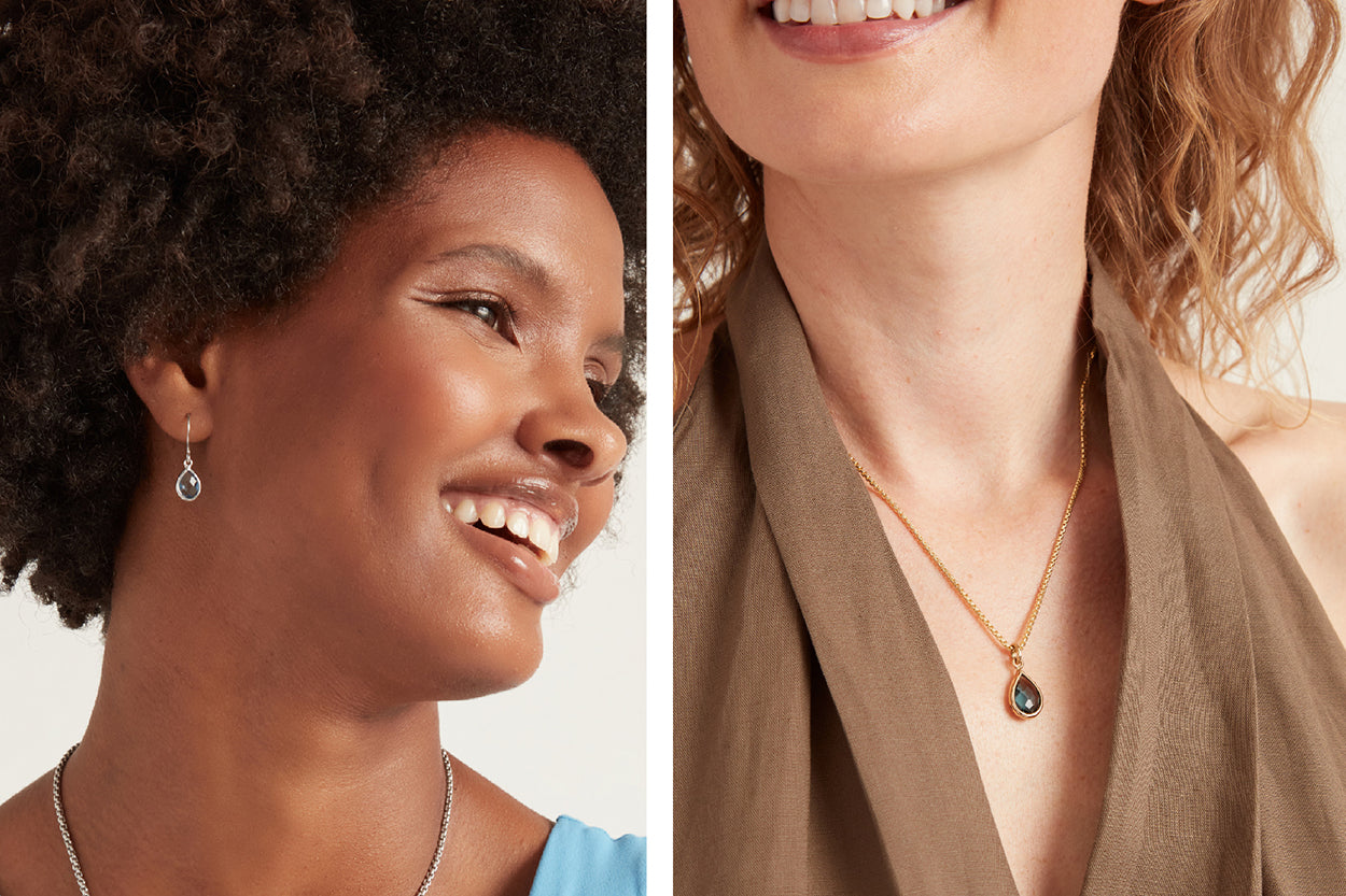 Explore the Dewdrop Collection, showcasing an array of rings, pendants, earrings, and bracelets adorned with gemstones set in a delicate pear-shaped design. Whether you choose to create a complete ensemble or simply pair a piece with your existing jewelry, this collection effortlessly adds elegance to your outfit. With its understated and dainty design, each item makes a significant statement, proving that simplicity can indeed leave a lasting impression.