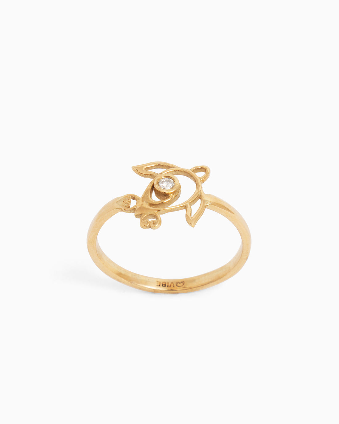 The Turtle Outline Ring, handcrafted in 14K solid gold, features a charming turtle outline accented...