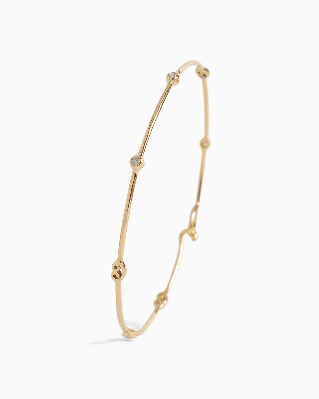 The Dainty Diamond & Petroglyph Hook Bracelet, handcrafted in gently hammered 14K solid gold, showcases...