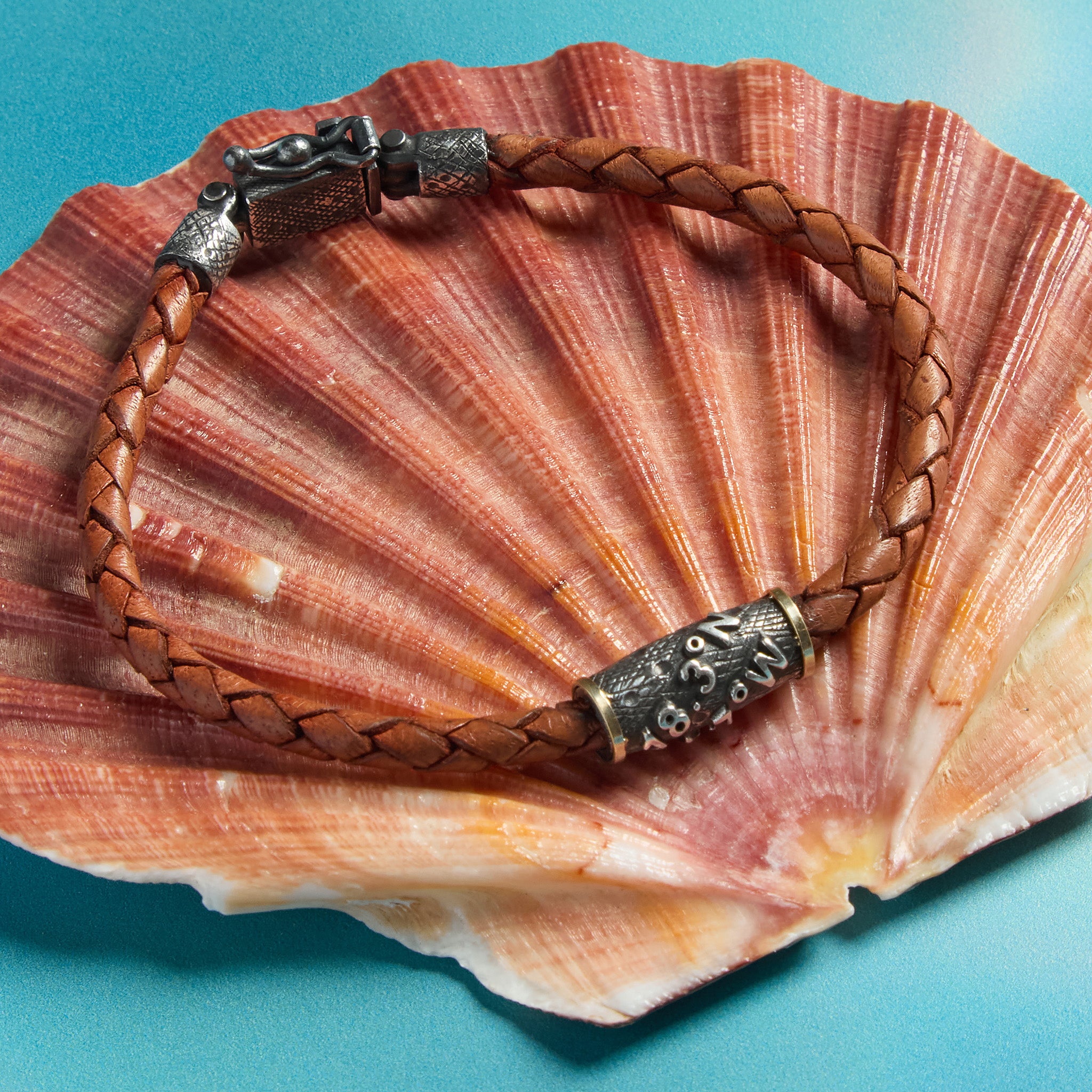 Marine Texture Hook Bracelet with Compass, 5mm