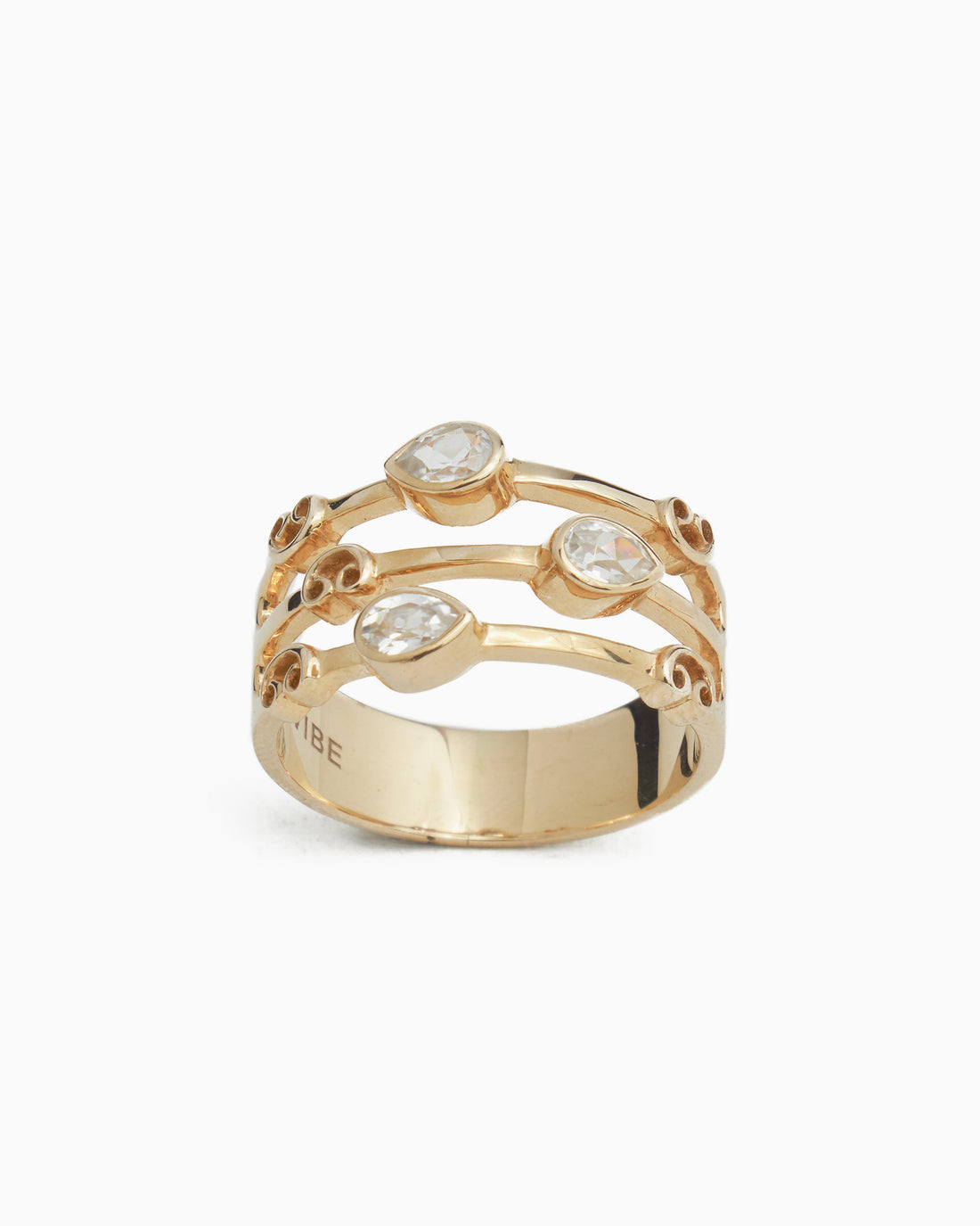 This stunning East to West Ring is handcrafted in 14K solid gold. Featuring five stacked...