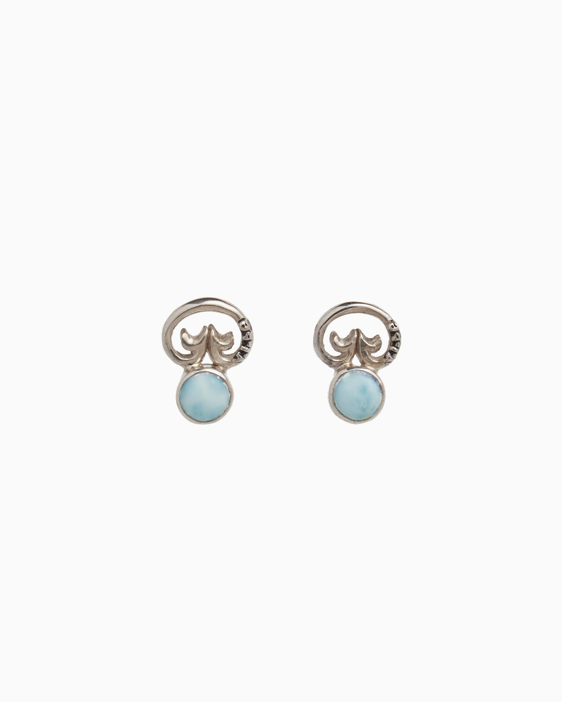 The Stone & Petroglyph Studs, handcrafted in sterling silver, feature a larimar cabochon set under...