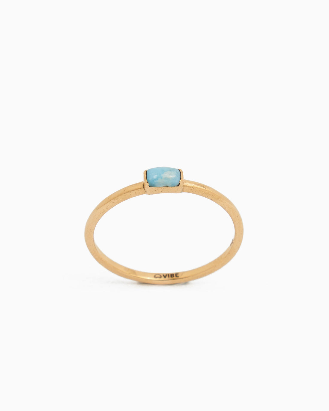 The Dainty Stacker Band, handcrafted in 14K solid gold, features a rectangular larimar cabochon. Whether...