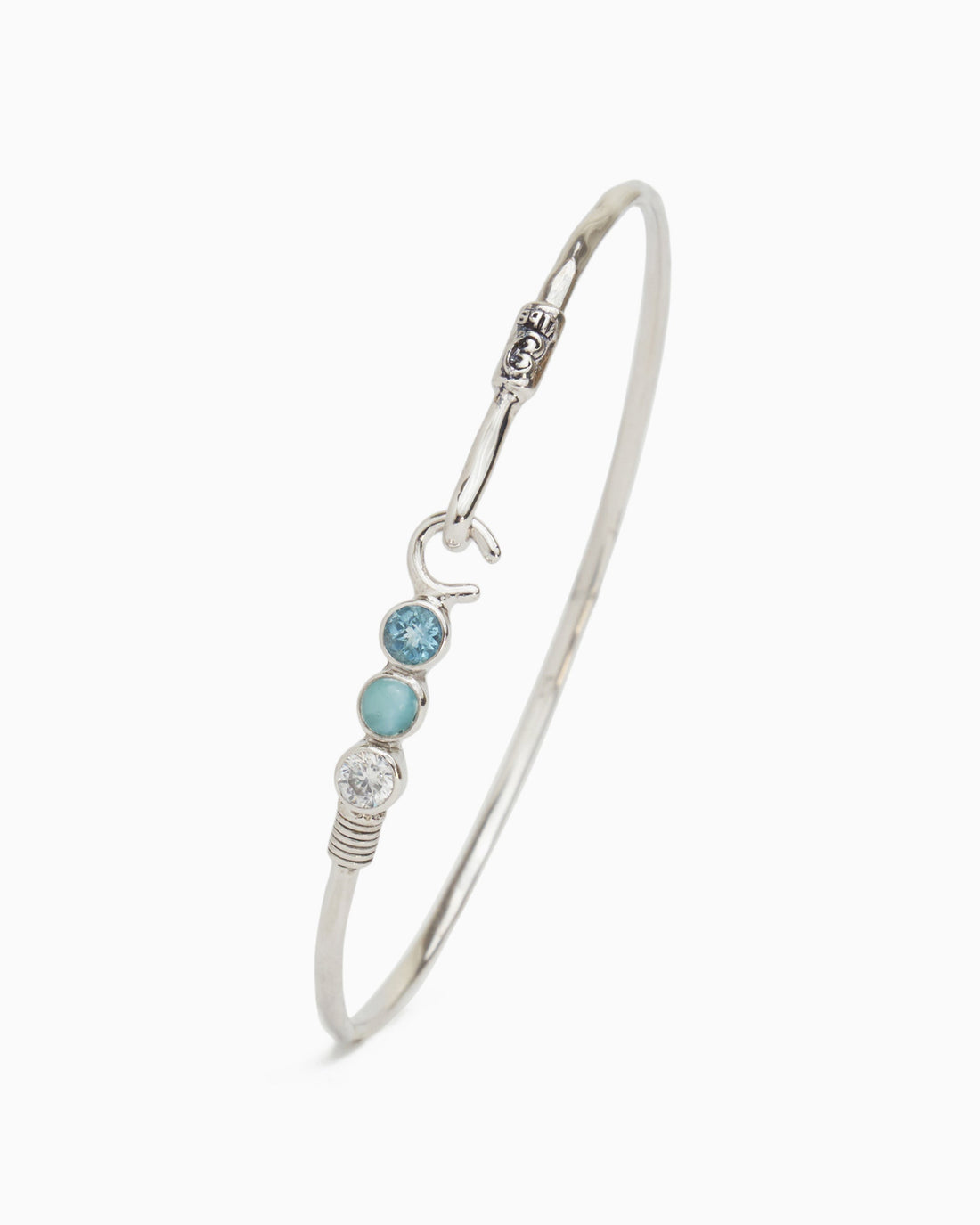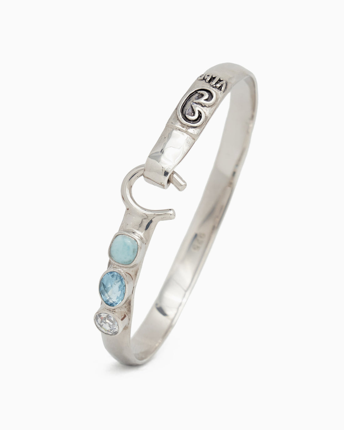 A Vibe signature, The Hook Bracelet with Triple Stones is fashioned in gently hammered sterling...