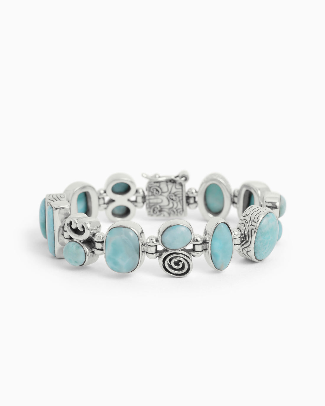 The Multi Larimar Stone Link Bracelet is handcrafted in sterling silver and adorned with various...