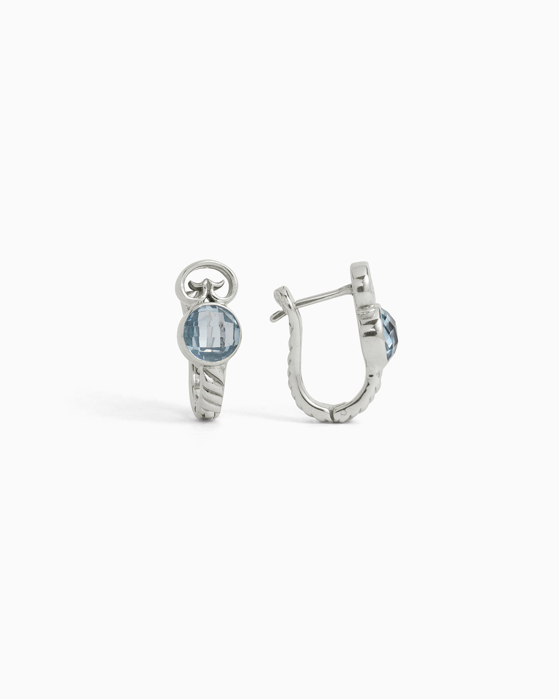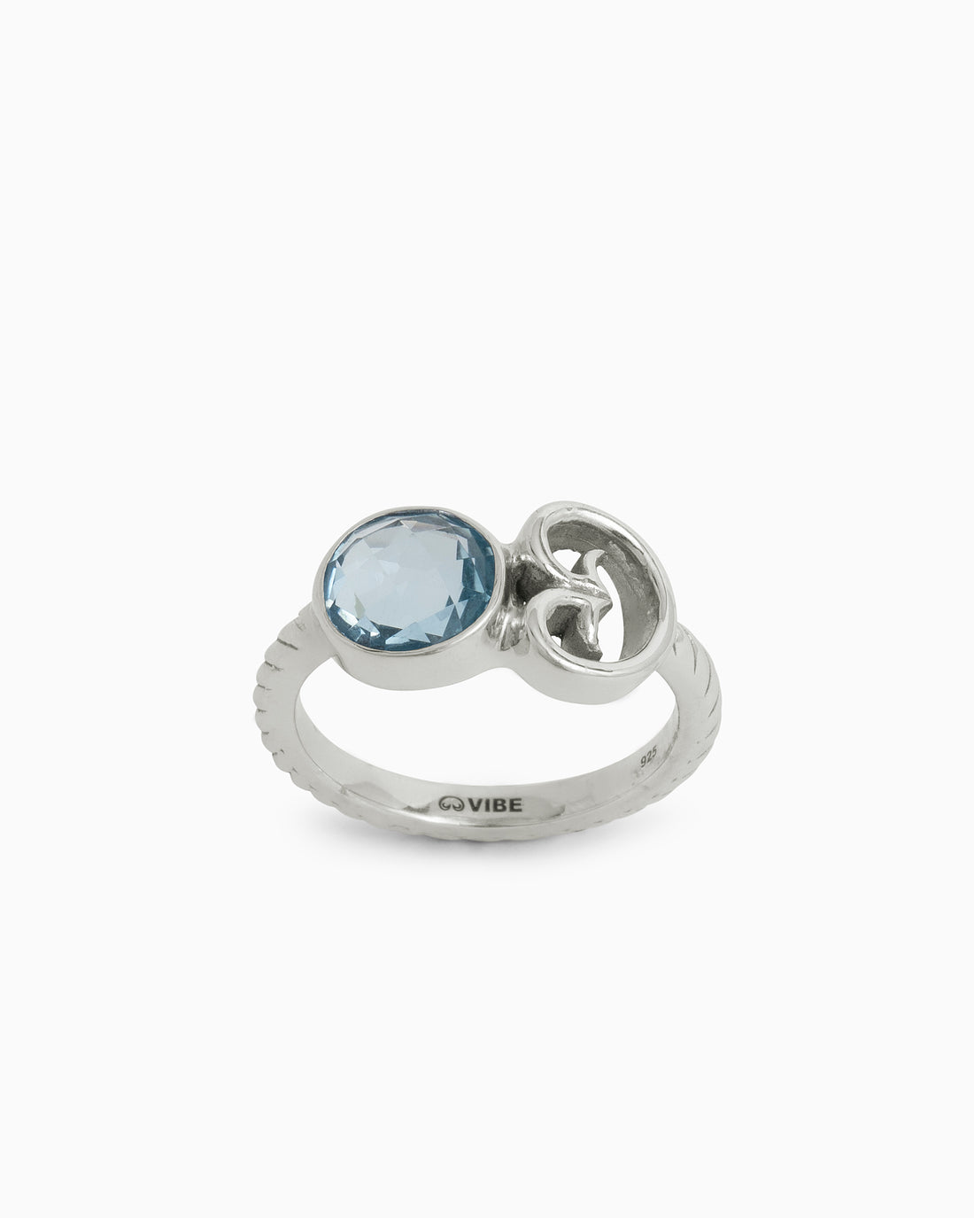 Handcrafted with a twisted sterling silver band, this ring has a faceted sky blue topaz...