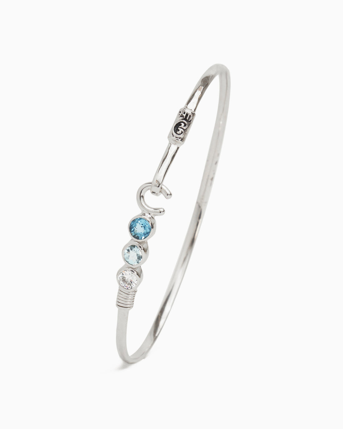 A Vibe signature, The Hook Bracelet with Triple Stones is fashioned in gently hammered sterling...