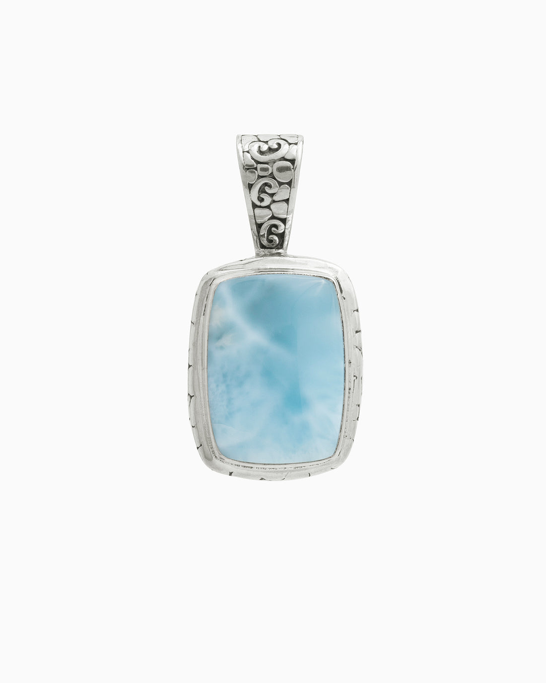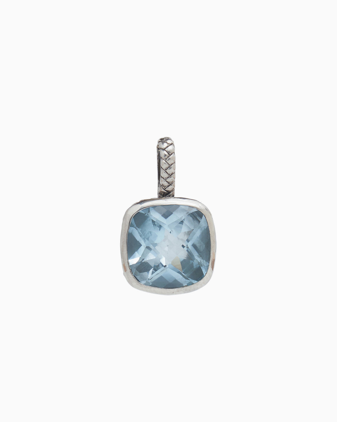 The Square Stone Pendant features a faceted sky blue topaz stone set in sterling silver...