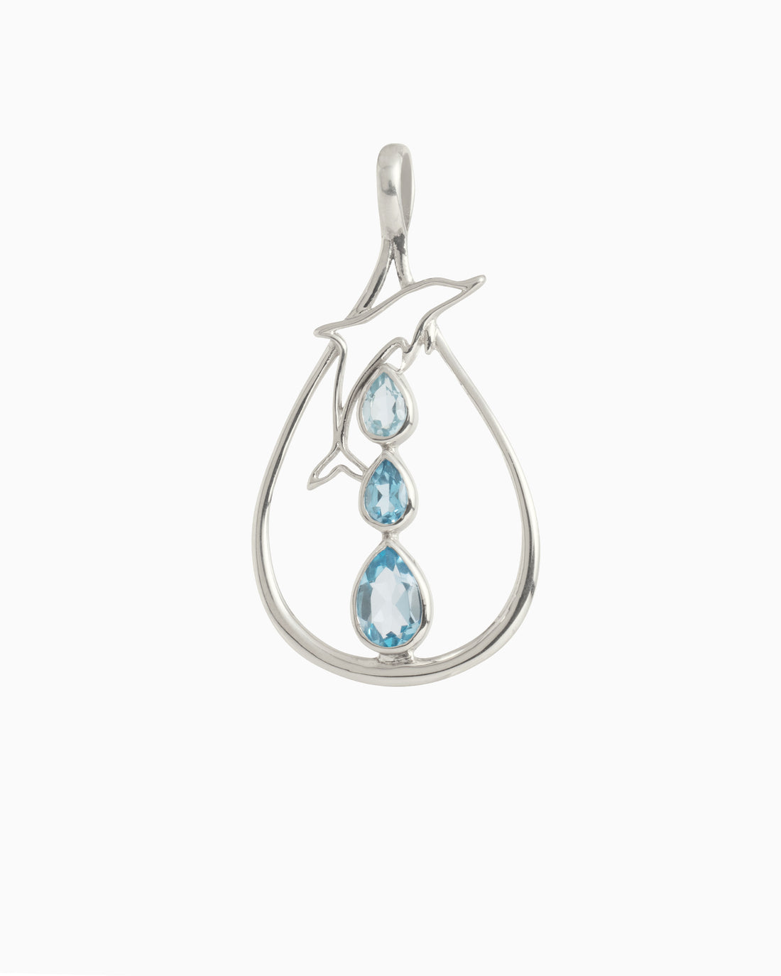 The Dancing Dolphin Pendant is handcrafted in sterling silver, featuring a teardrop-shaped outline with a...