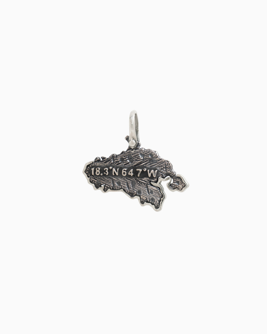 The Marine Texture Map Coordinates Pendant, crafted in oxidized sterling silver, showcases the beautiful island...