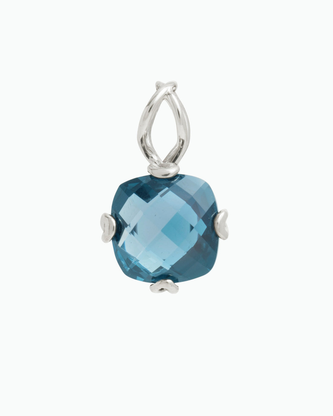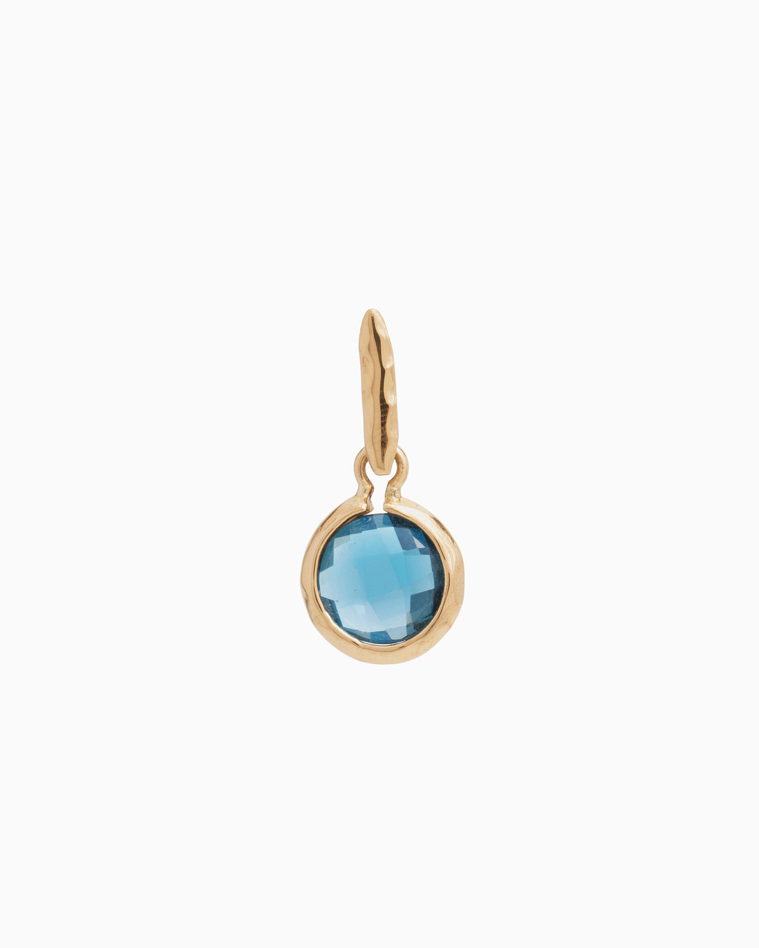 Our dainty sterling silver Round Stone Charm features a faceted London blue topaz stone with...