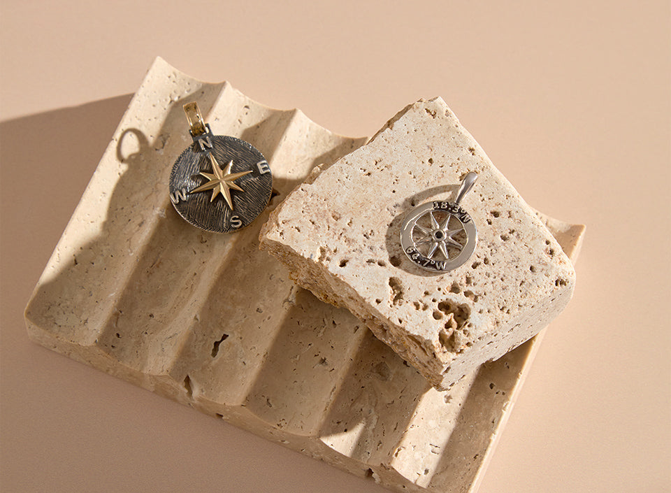Petroglyph Compass Pendant with Marine Texture