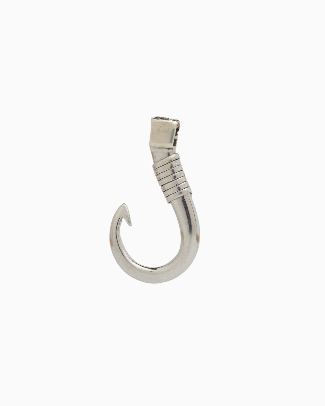 The marine-inspired Fish Hook Pendant is handcrafted from sterling silver, accented by seven good luck...