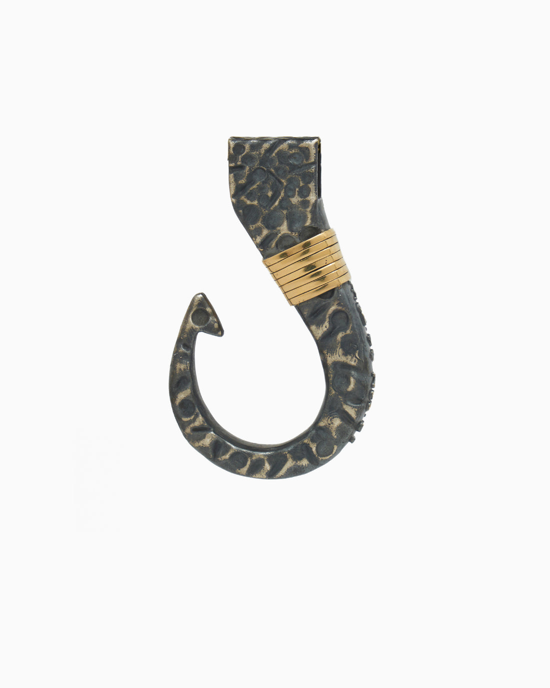 The Large Fish Hook Pendant is handcrafted from oxidized sterling silver, accented by seven 14K...