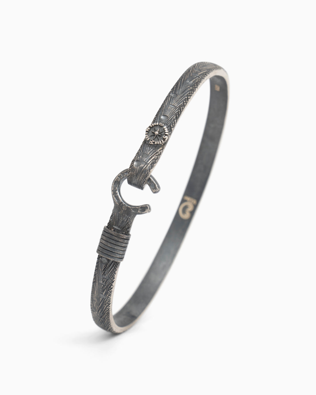 The Compass Hook Bracelet is a rugged design handcrafted in oxidized sterling silver featuring our...