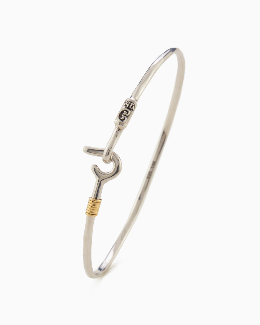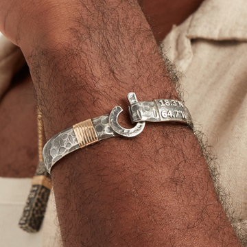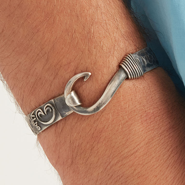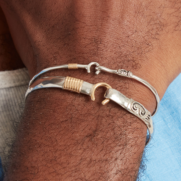The Men's St. John hook bracelet is a hallmark of Vibe Jewelry, celebrating the island's allure and drawing inspiration from the classic Hook Bracelet. This design merges style with tradition and profound symbolism. Wearing the hook bracelet not only enhances your style but also connects you with the island's positive energy. According to Caribbean tradition, position the hook inward to keep love close, or outward to welcome new love. Expertly handcrafted in sterling silver or 14K solid gold and available with various gemstones, discover the piece that resonates with you.
