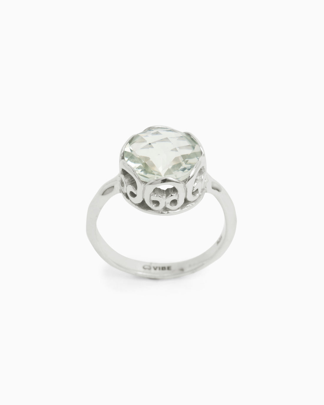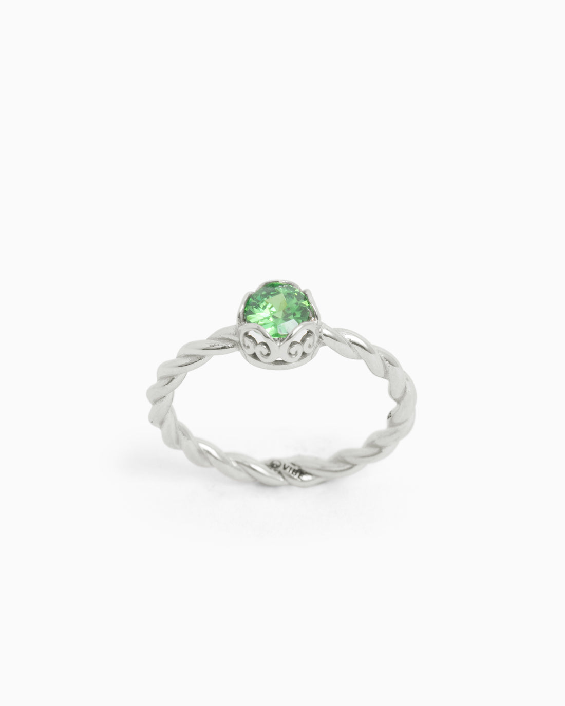 The Twisted Princess Petroglyph Stone Ring is handcrafted from sterling silver. Featured a faceted green...