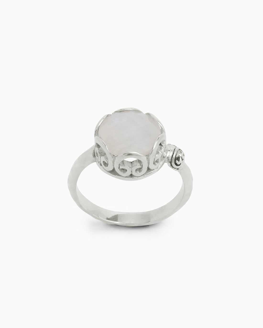 The Twisted Princess Petroglyph Stone Ring is handcrafted from sterling silver. Featured a faceted red...