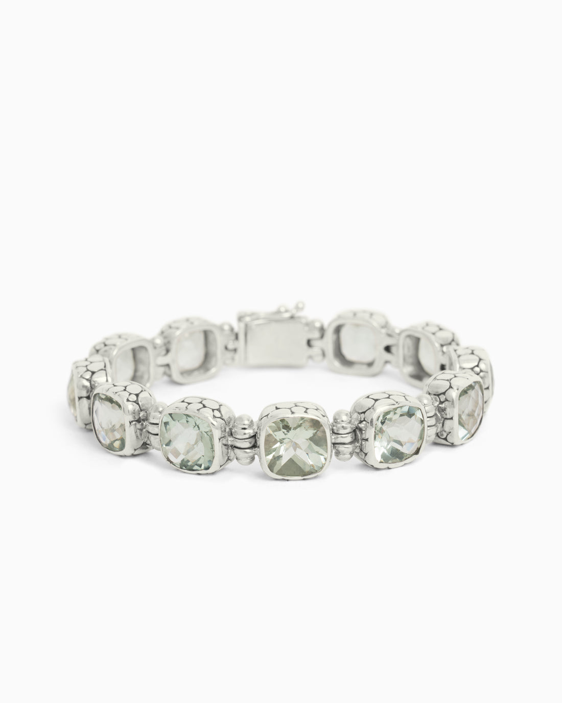 The Gemstone Link Bracelet with Turtle Texture features luminous cushion cut prasiolite stones throughout the...