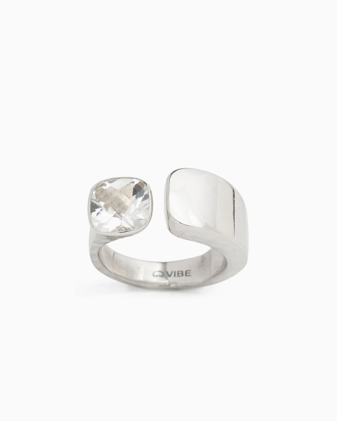 The Open Band Stone Ring is handcrafted with sterling silver and features a faceted white...
