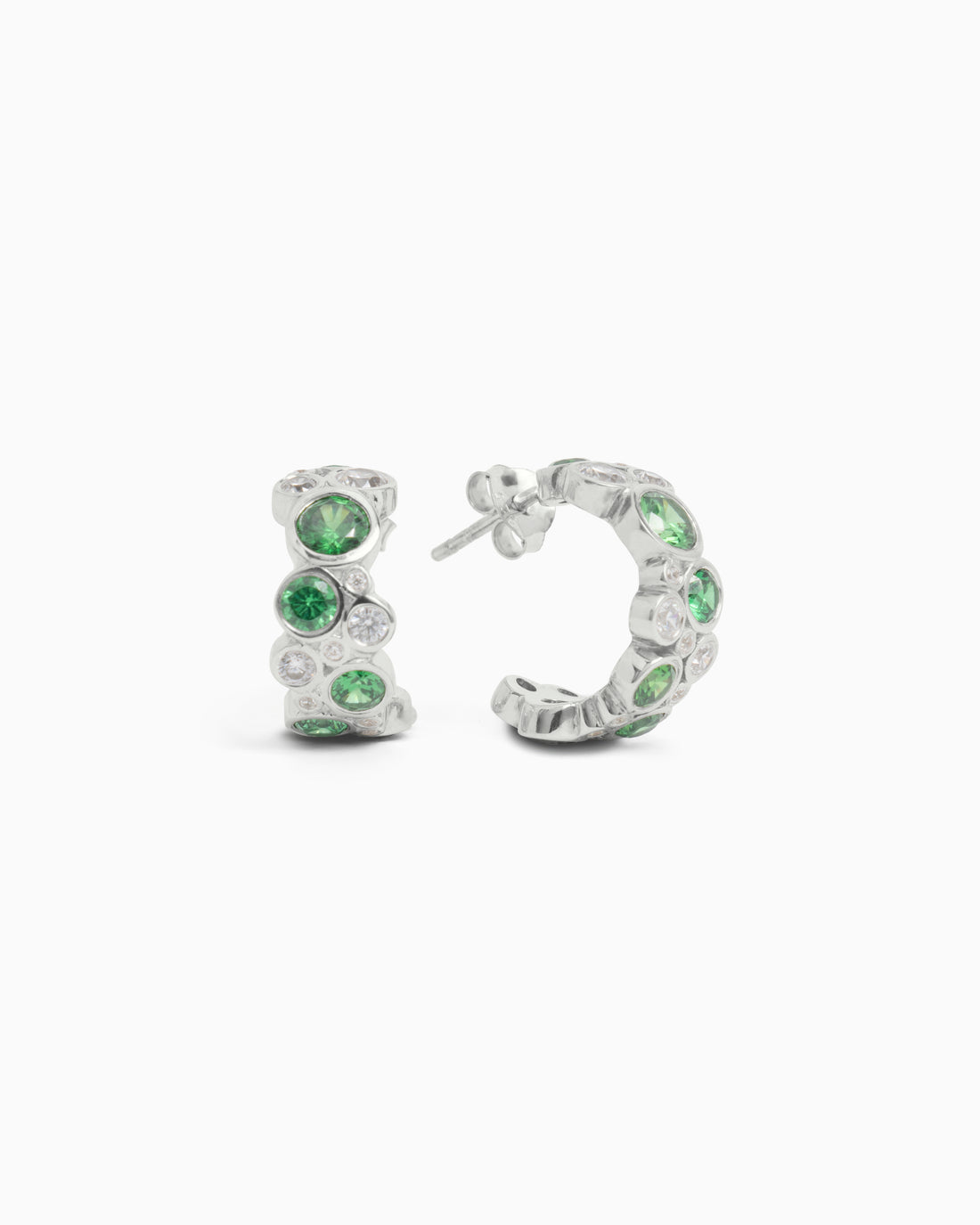 The Twisted Ocean Bubbles Drop Earrings feature faceted green zircon and white zircon stones in...