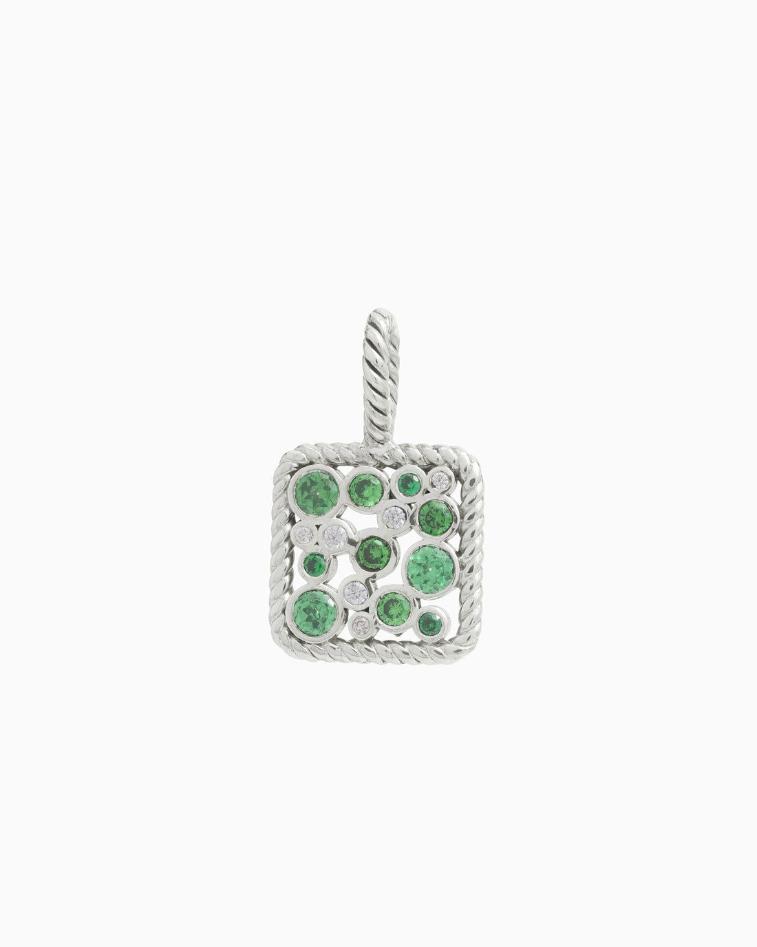 The Twisted Ocean Bubbles Pendant is an eye-catching piece featuring a mix of faceted green...
