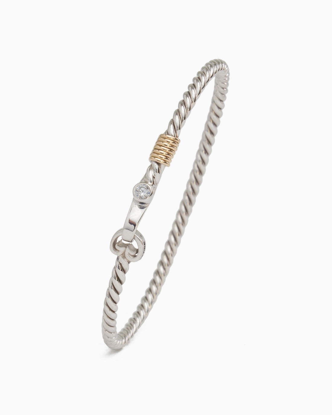 The Island Bloom Twisted Hinge Bracelet is an elegant sterling silver piece with a twisted...