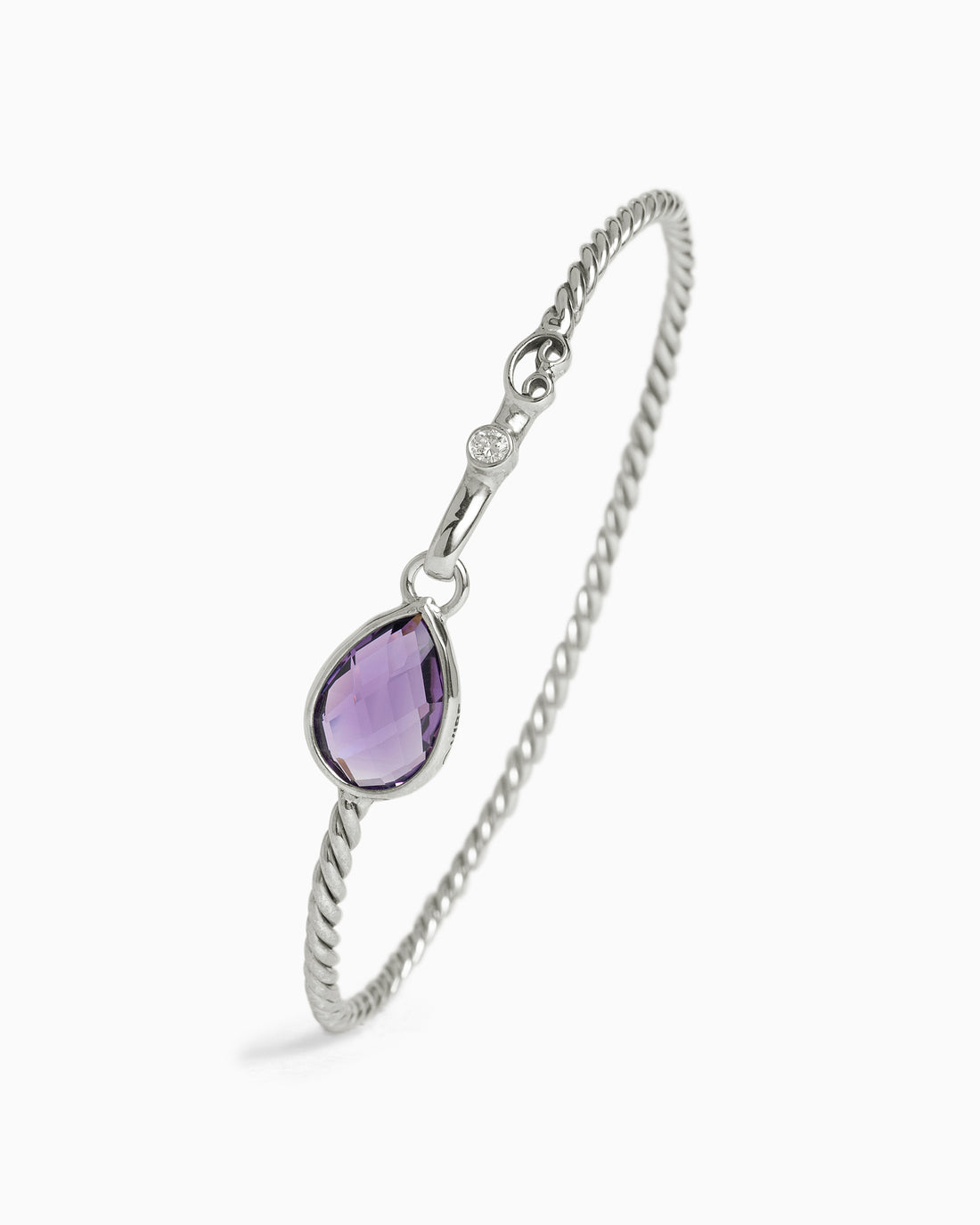 The sterling silver Twisted Hook Bracelet with Dewdrop Stone features an intertwined rope-inspired band adorned...