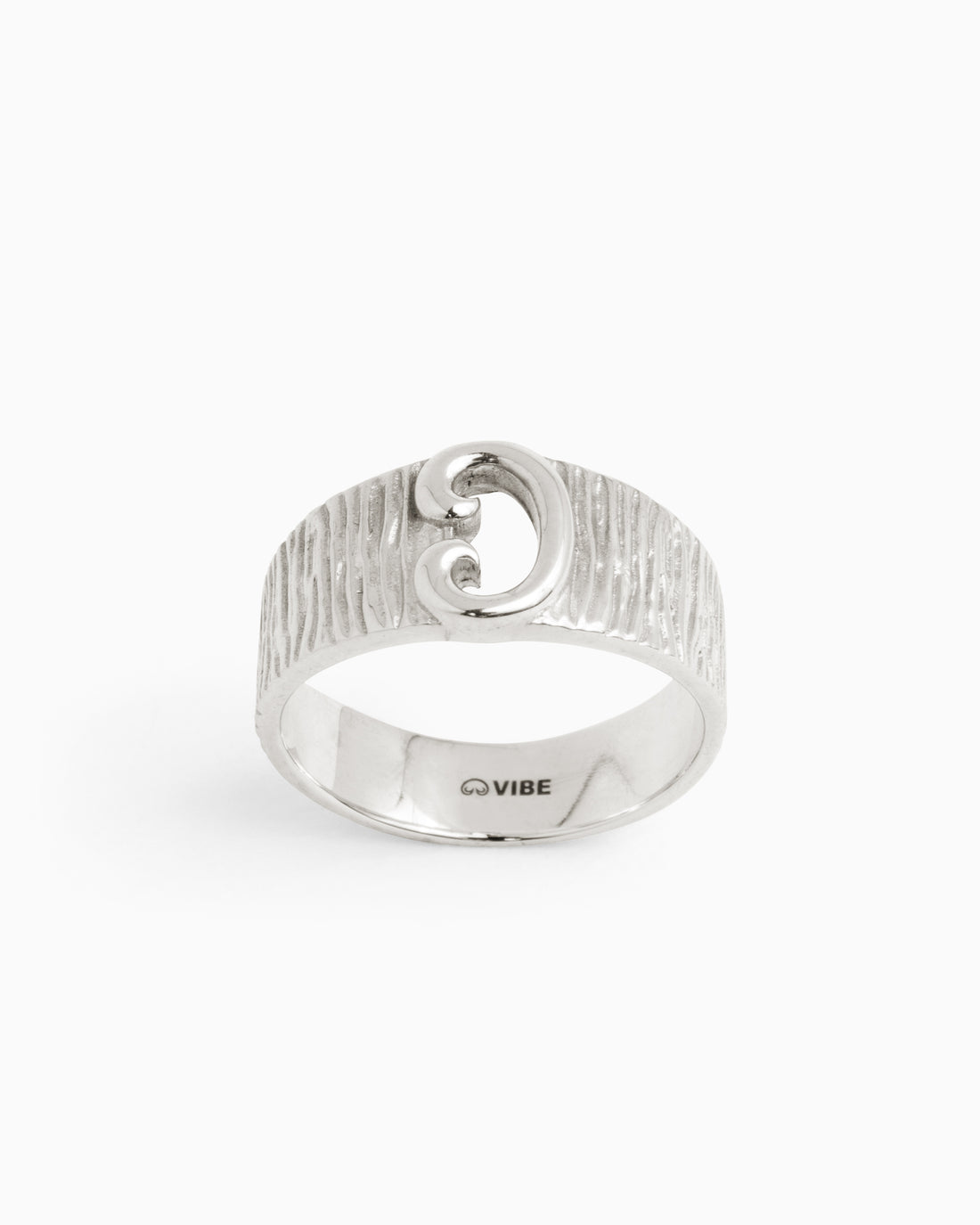 Inspired by the movement of the ocean, the Water Texture Collection features rippled patterns that reflect the flow of tides and currents. Available in two finishes—shiny sterling silver for a glistening water look, and oxidized silver for a darker, saltwater feel.