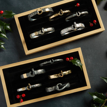 The Compass Hook Bracelet is a rugged design handcrafted in oxidized sterling silver featuring our...