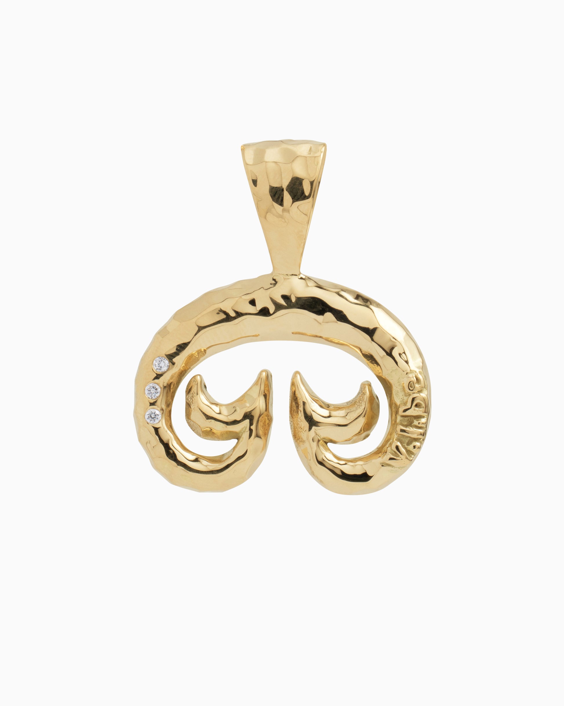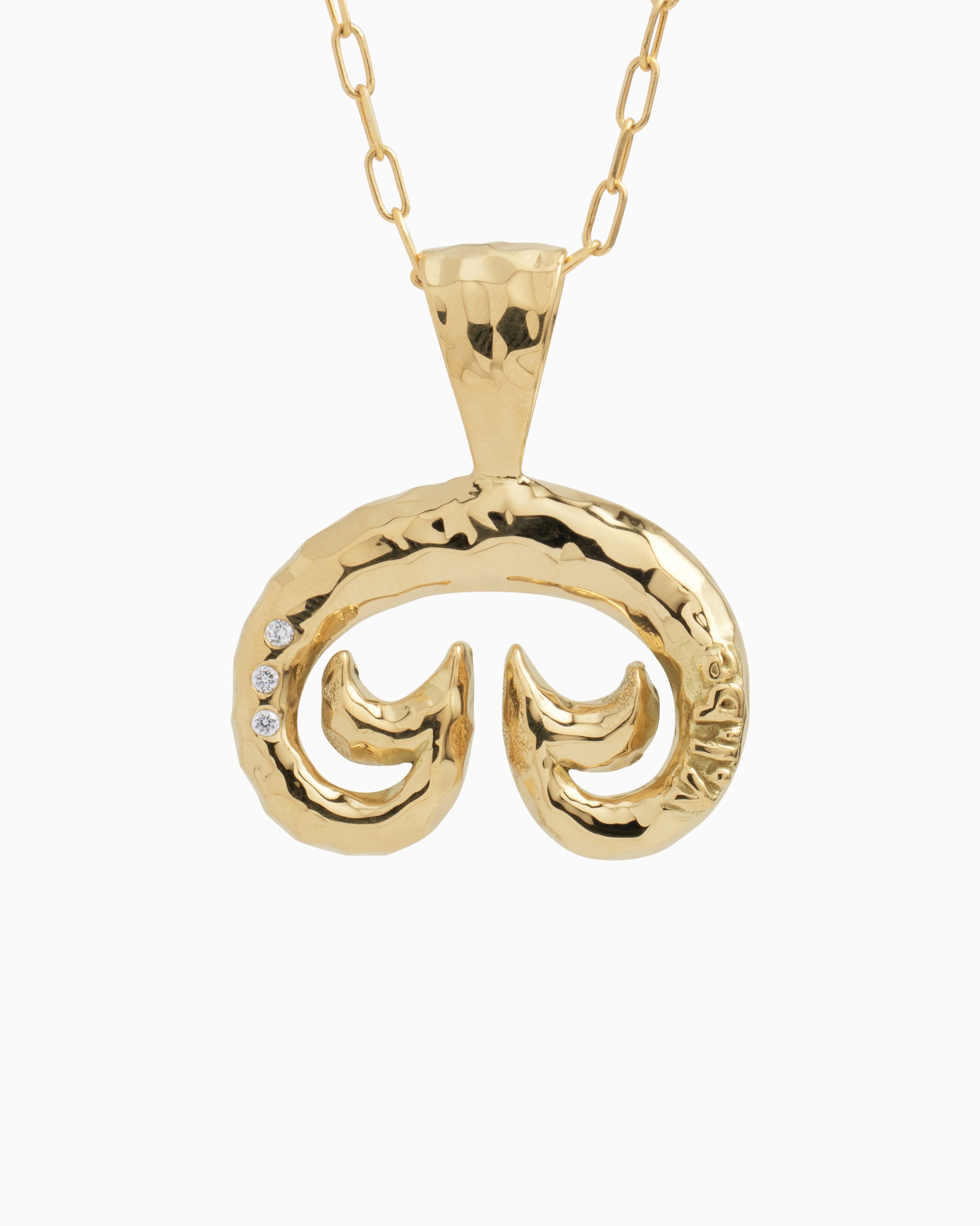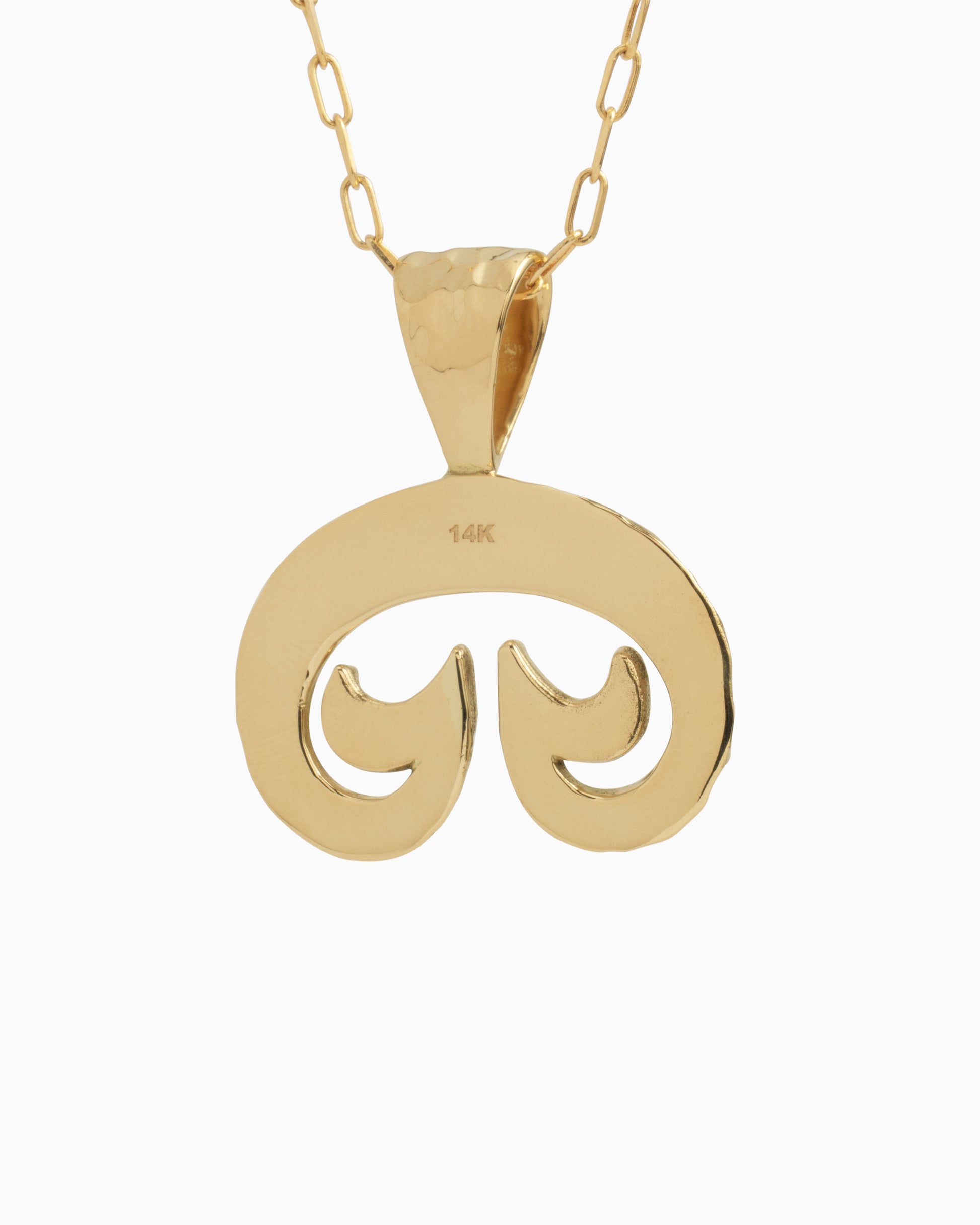 The Hammered Petroglyph Pendant is handcrafted in 14K solid gold and features the iconic island petroglyph with a gently hammered surface that echoes the flow of ocean currents. A trio of sparkling diamonds adds subtle brilliance to the form. Pair with your favorite chain, sold separately.