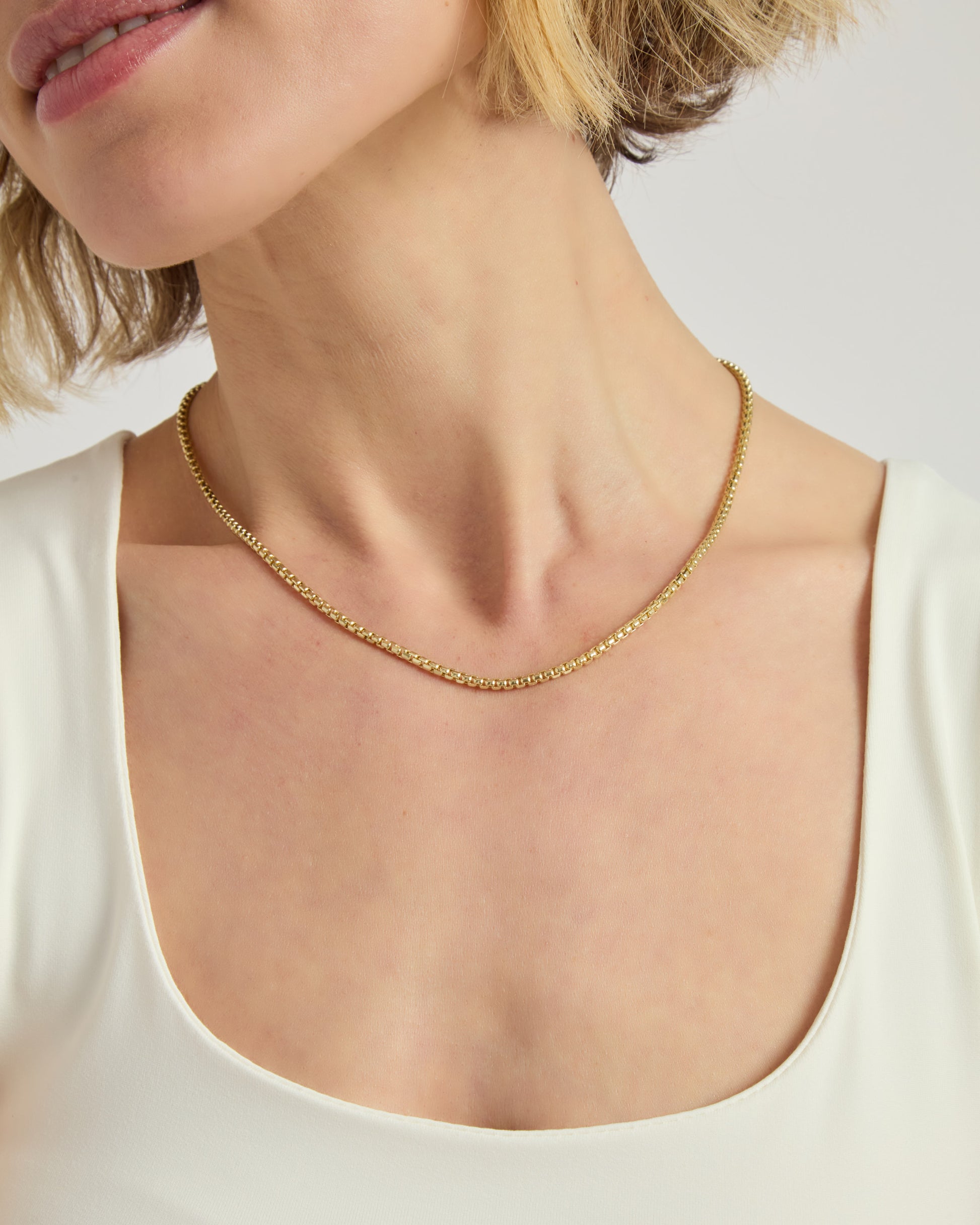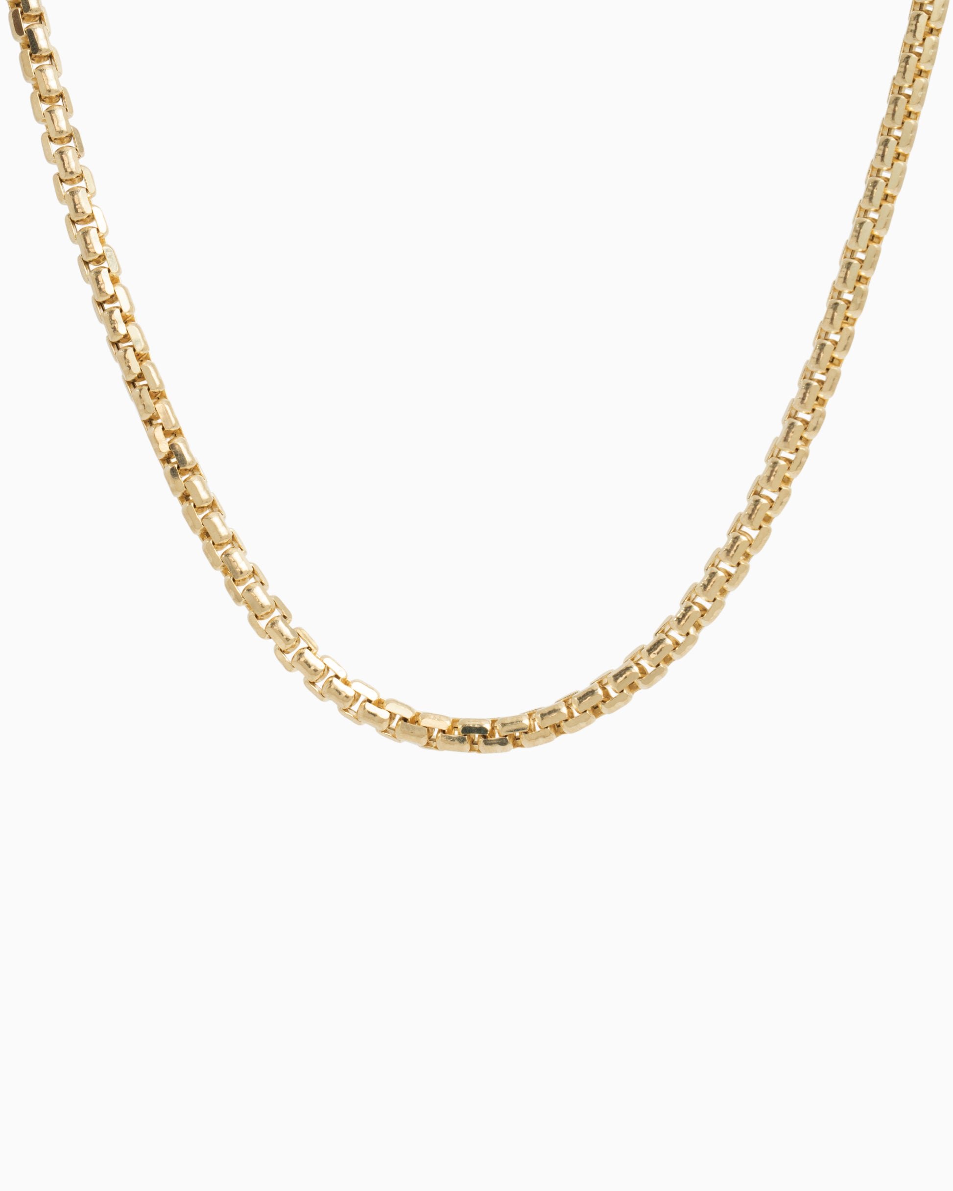 The Nautical Box Chain is our take on the timeless box chain design. Made from 14K solid gold, it's both durable and versatile, making it an excellent addition to any collection. Whether you pair it with a favorite pendant or let it shine solo, this chain elevates any outfit.