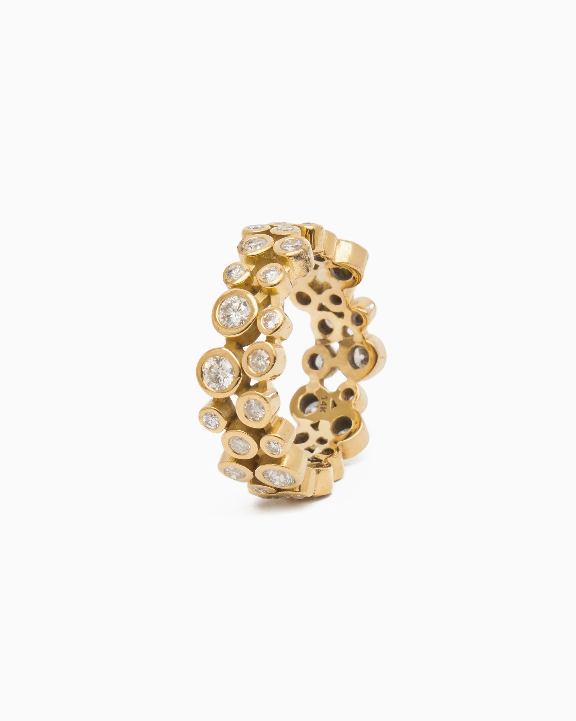 The Ocean Bubbles Diamond Ring effortlessly captures attention. Handcrafted in 14K solid gold, this whimsical design combines several sizes of diamonds to create a statement piece that will undoubtedly become one of your favorites. Whether worn alone or paired with a set of rings, this bubble ring makes a standout addition to your jewelry collection.