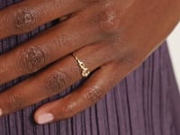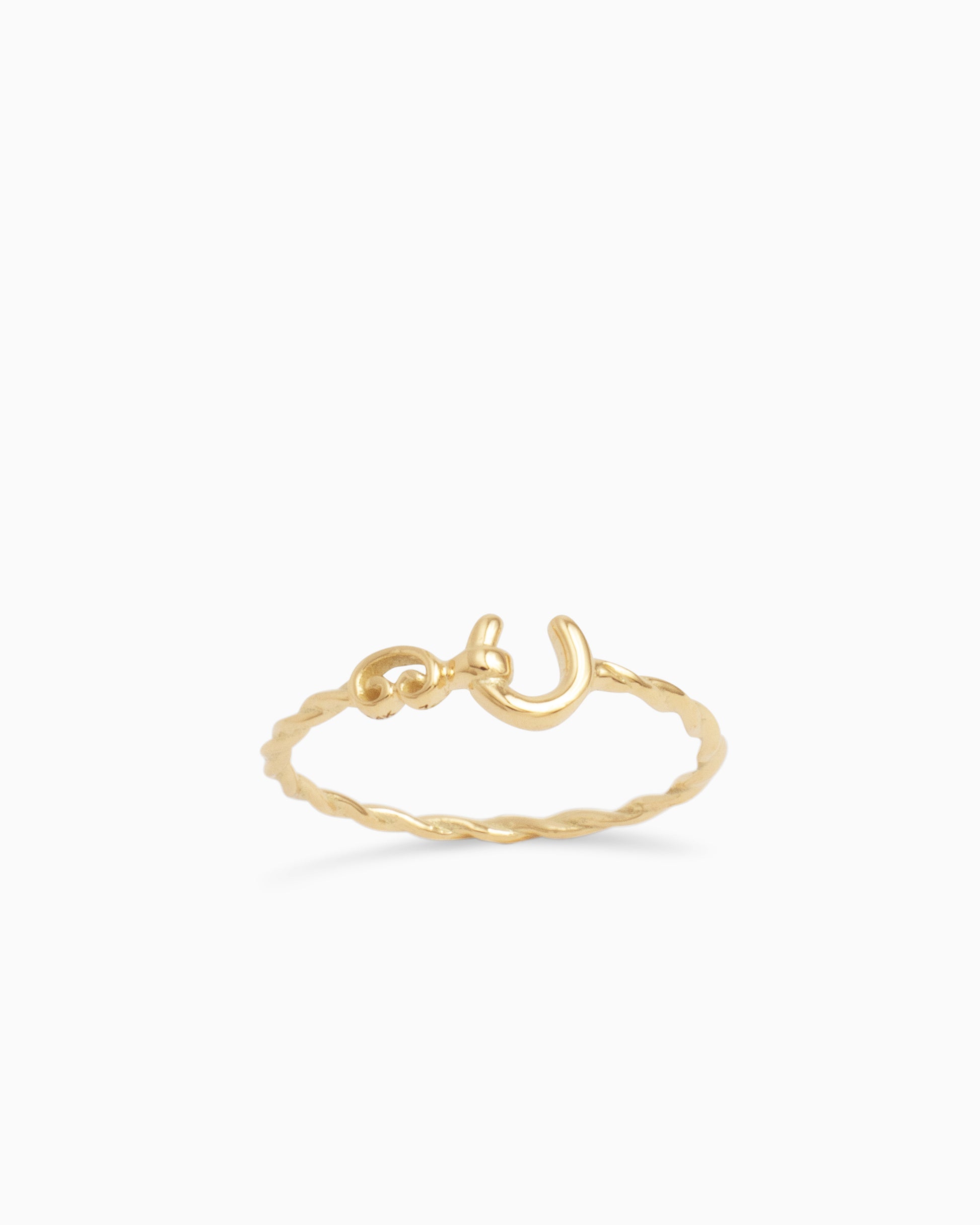 This Twisted Hook Ring is handcrafted in solid 14K gold with an intertwined, rope-inspired band, an open petroglyph detail, and a distinctive “C” hook. In Caribbean tradition, wear the hook inward to keep love close, or outward to attract new love.