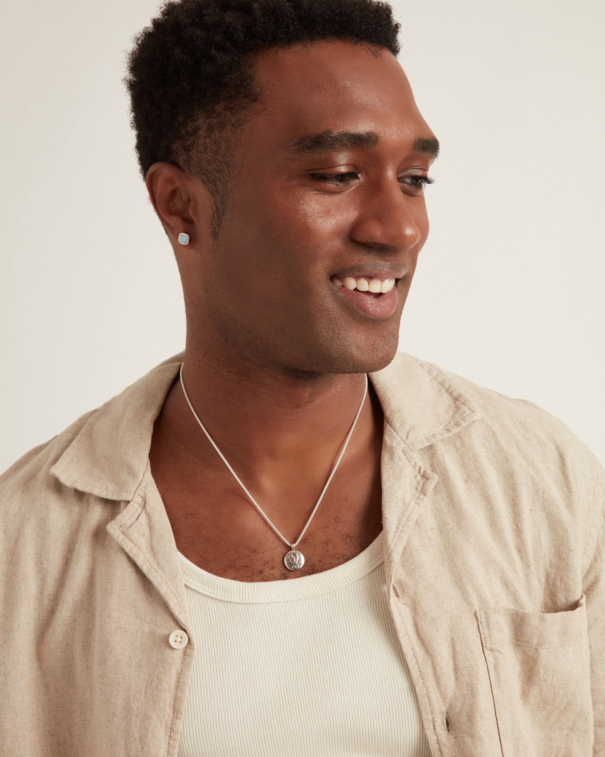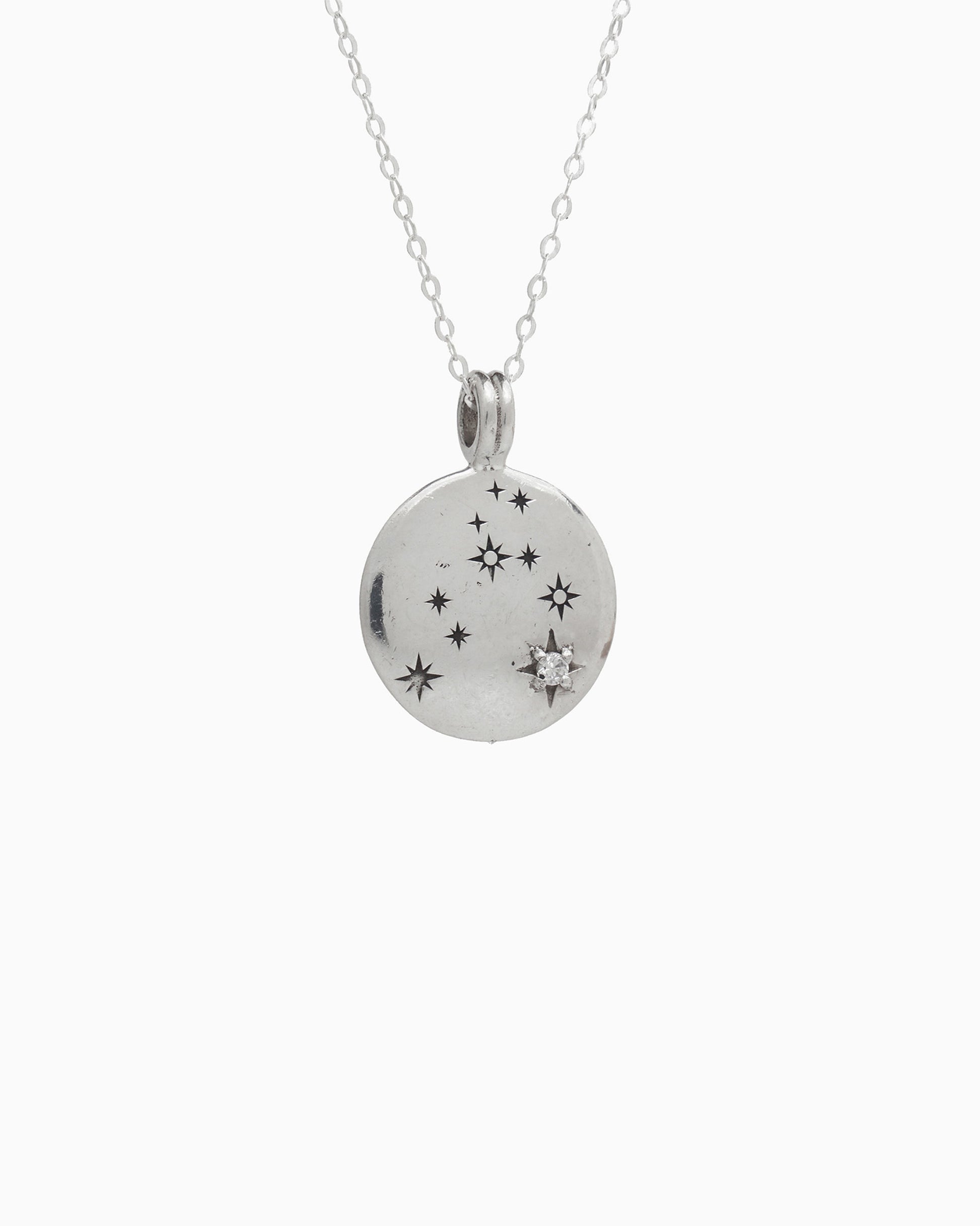 The Astrology Pendant is handcrafted from sterling silver, showcasing the Leo zodiac symbol on one side and the constellation on the other, with a faceted zircon stone representing the brightest star. This pendant is a thoughtful gift, whether it's for yourself or someone else in your life, symbolizing their unique traits and celestial connection. Pair with your favorite chain, sold separately.