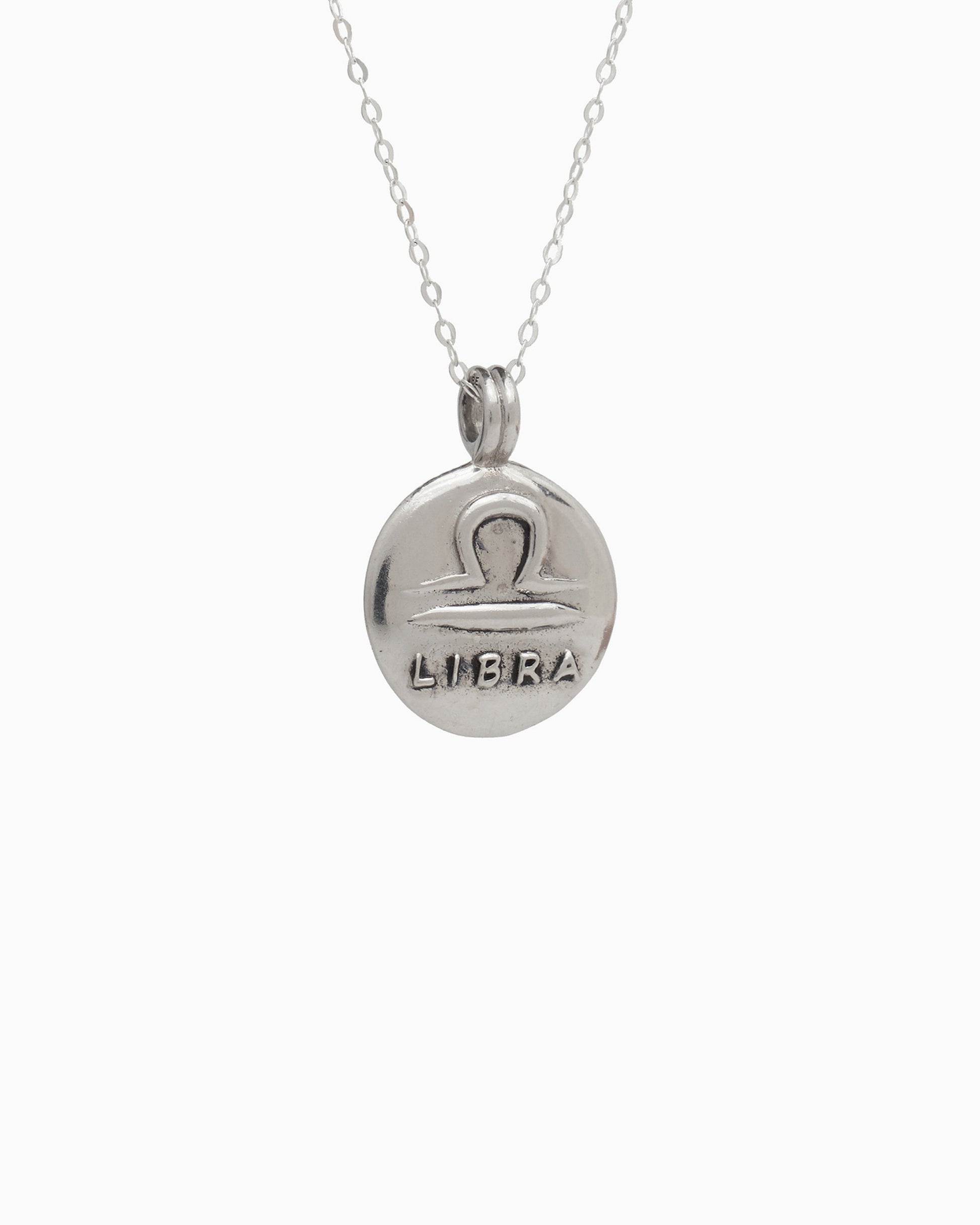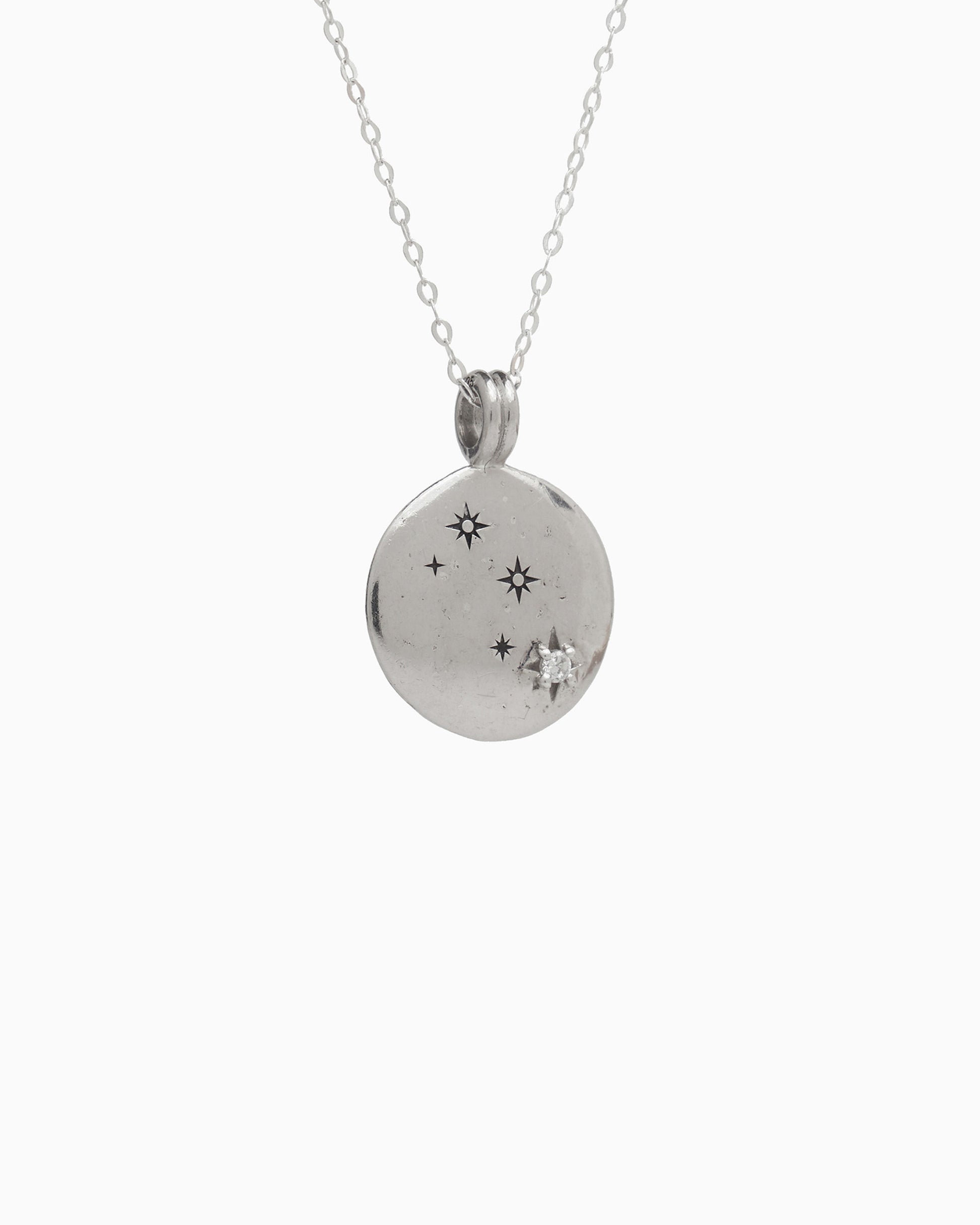 The Astrology Pendant is handcrafted from sterling silver, showcasing the Libra zodiac symbol on one side and the constellation on the other, with a faceted zircon stone representing the brightest star. This pendant is a thoughtful gift, whether it's for yourself or someone else in your life, symbolizing their unique traits and celestial connection. Pair with your favorite chain, sold separately.