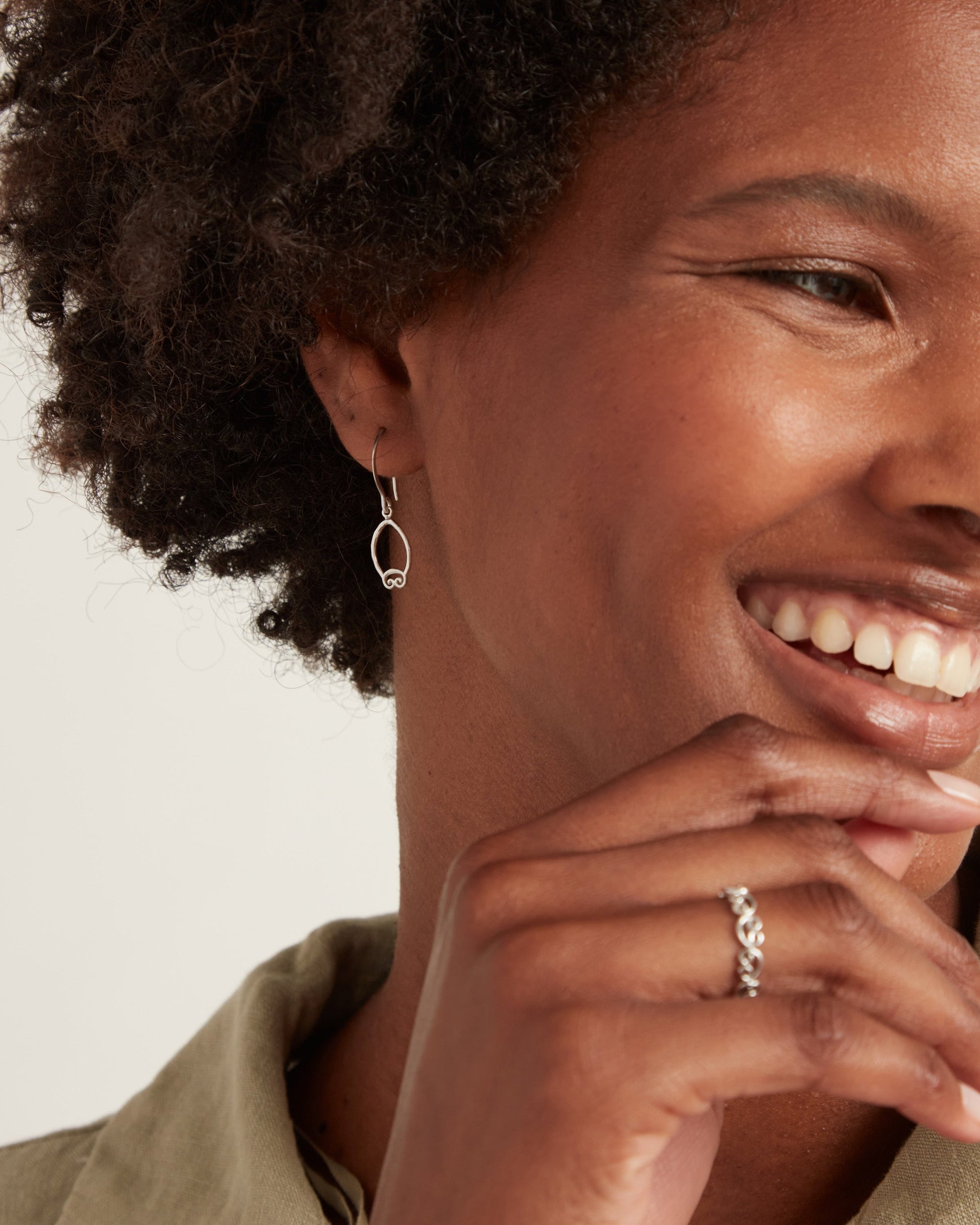 The Blooming Petroglyph Drop Earrings, handcrafted in sterling silver, feature an oval outline with a blooming St. John petroglyph. This stylish dangle will definitely make you bloom and flourish!