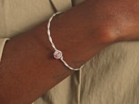 The Pink Ribbon Twisted Hook Bracelet is handcrafted in sterling silver with a twisted, rope-inspired band and featuring a pink zircon cabochon, encircled in a setting of interwoven awareness ribbons. A quiet tribute to resilience, hope, and love—designed in honor of Breast Cancer Awareness and the strength of those impacted by it.