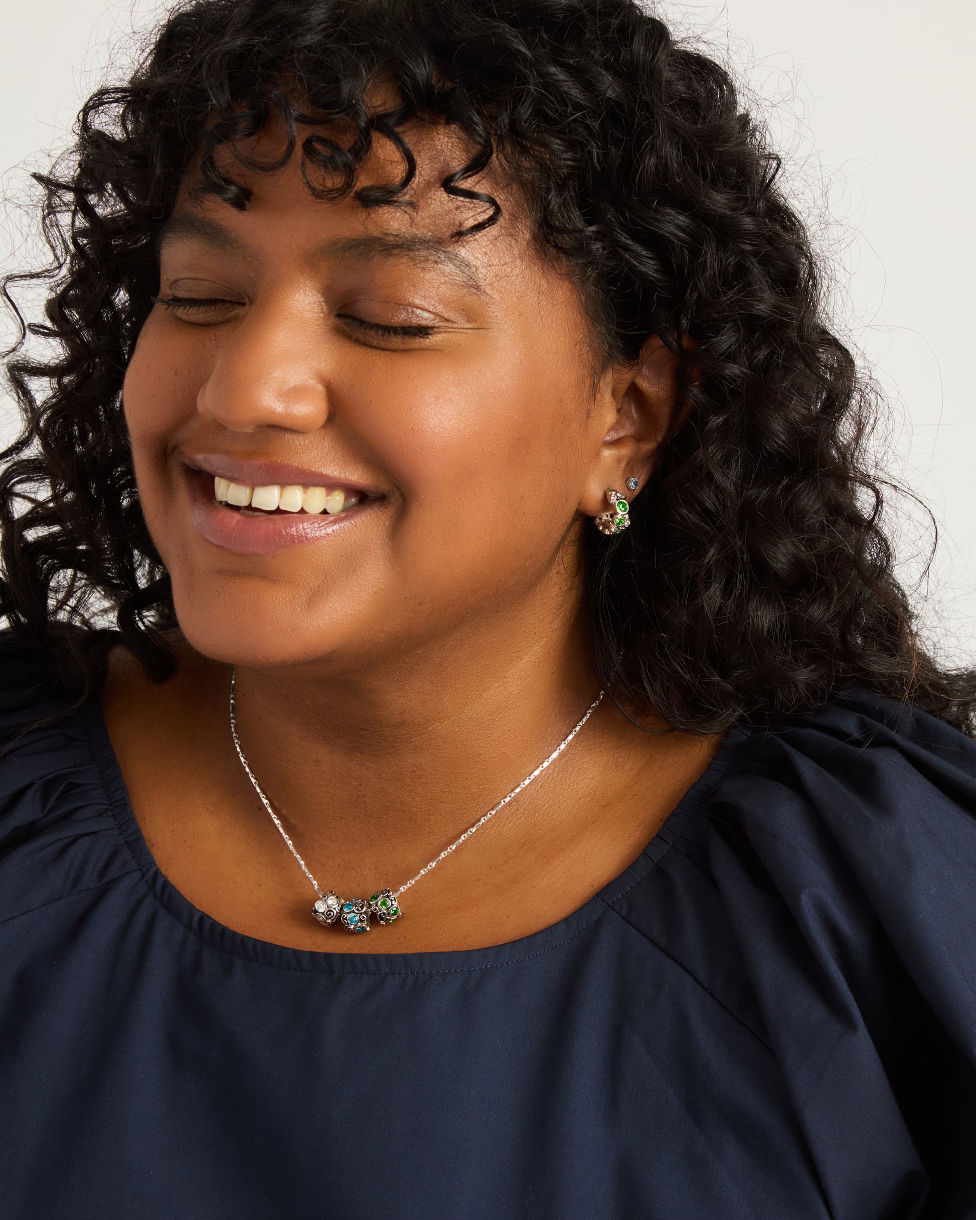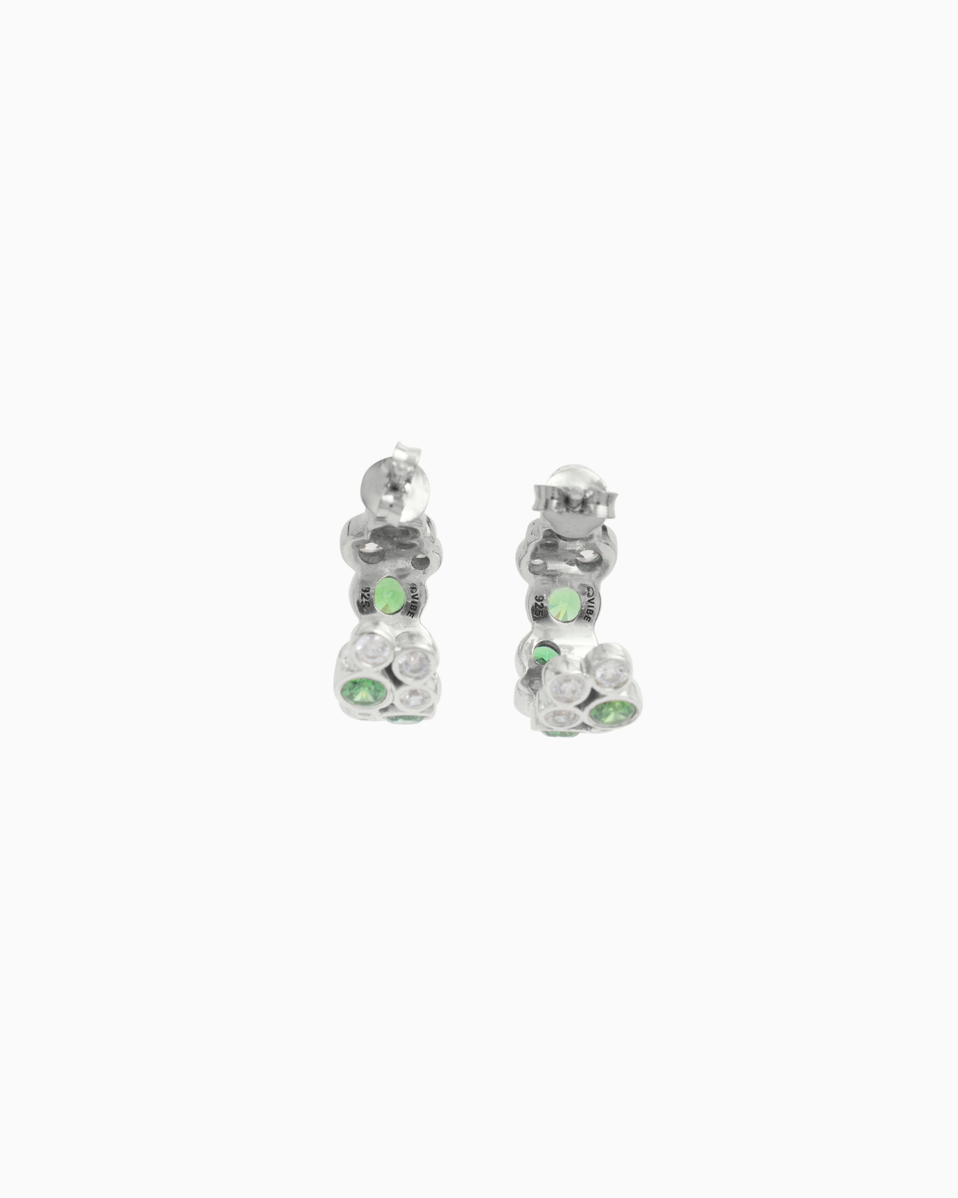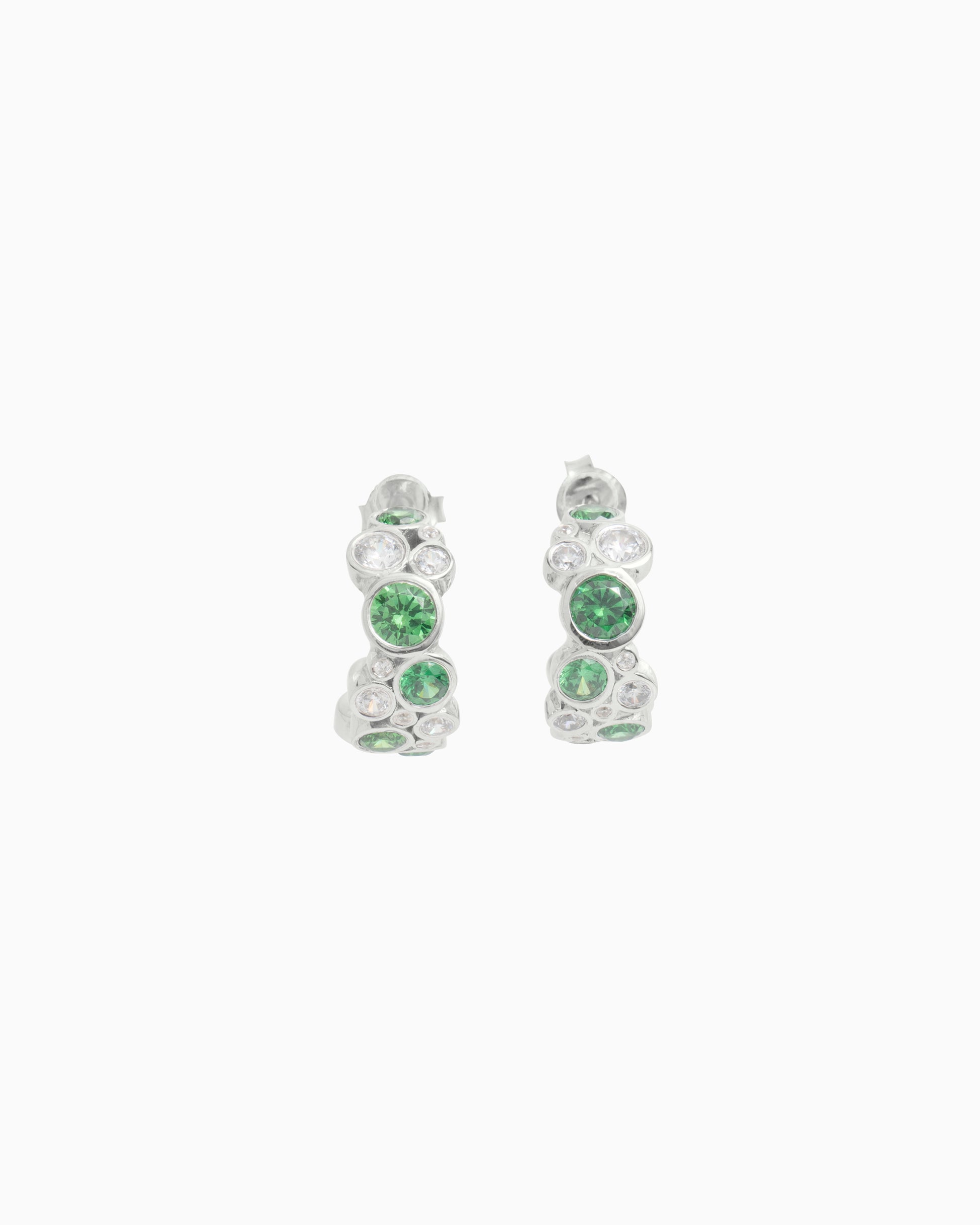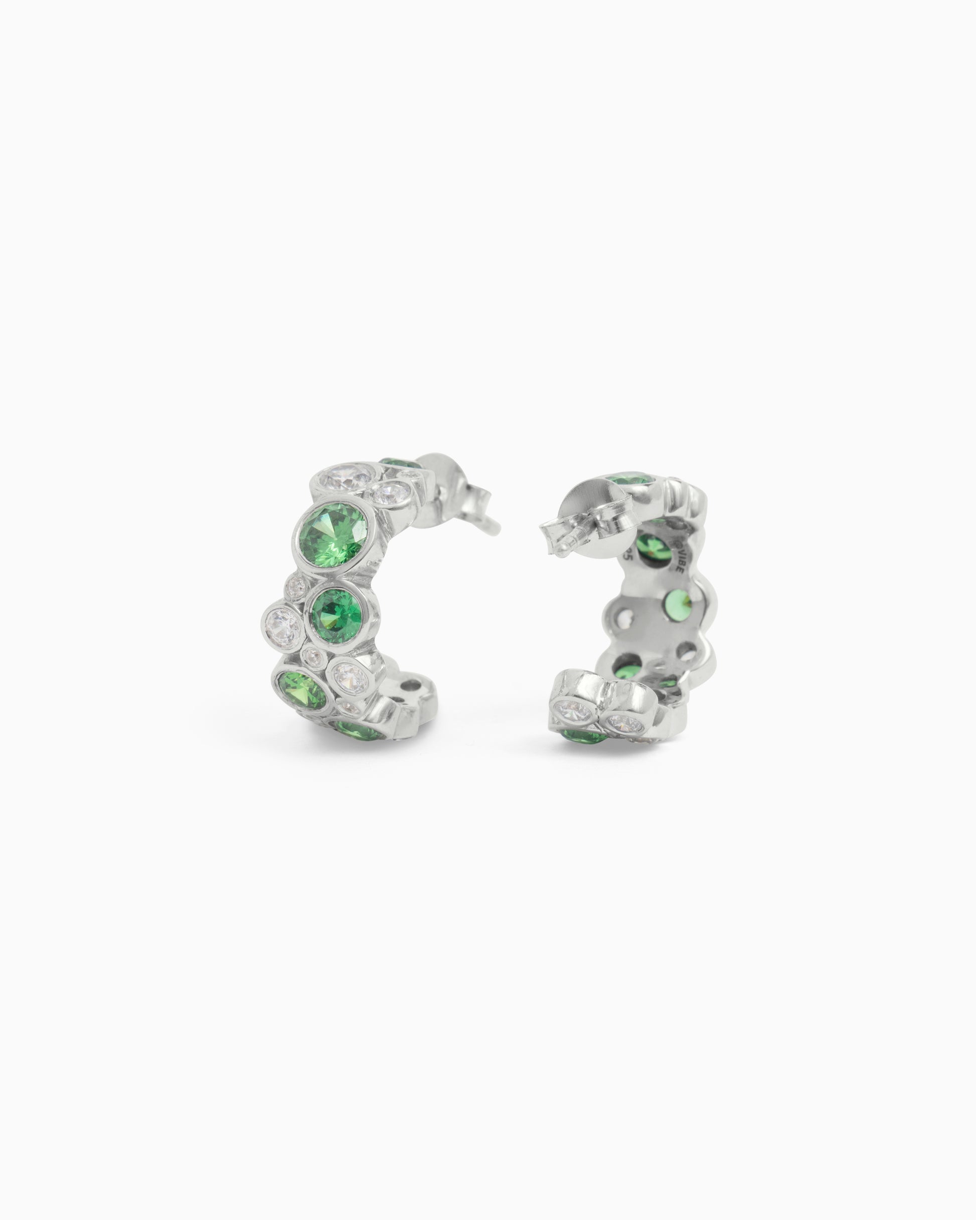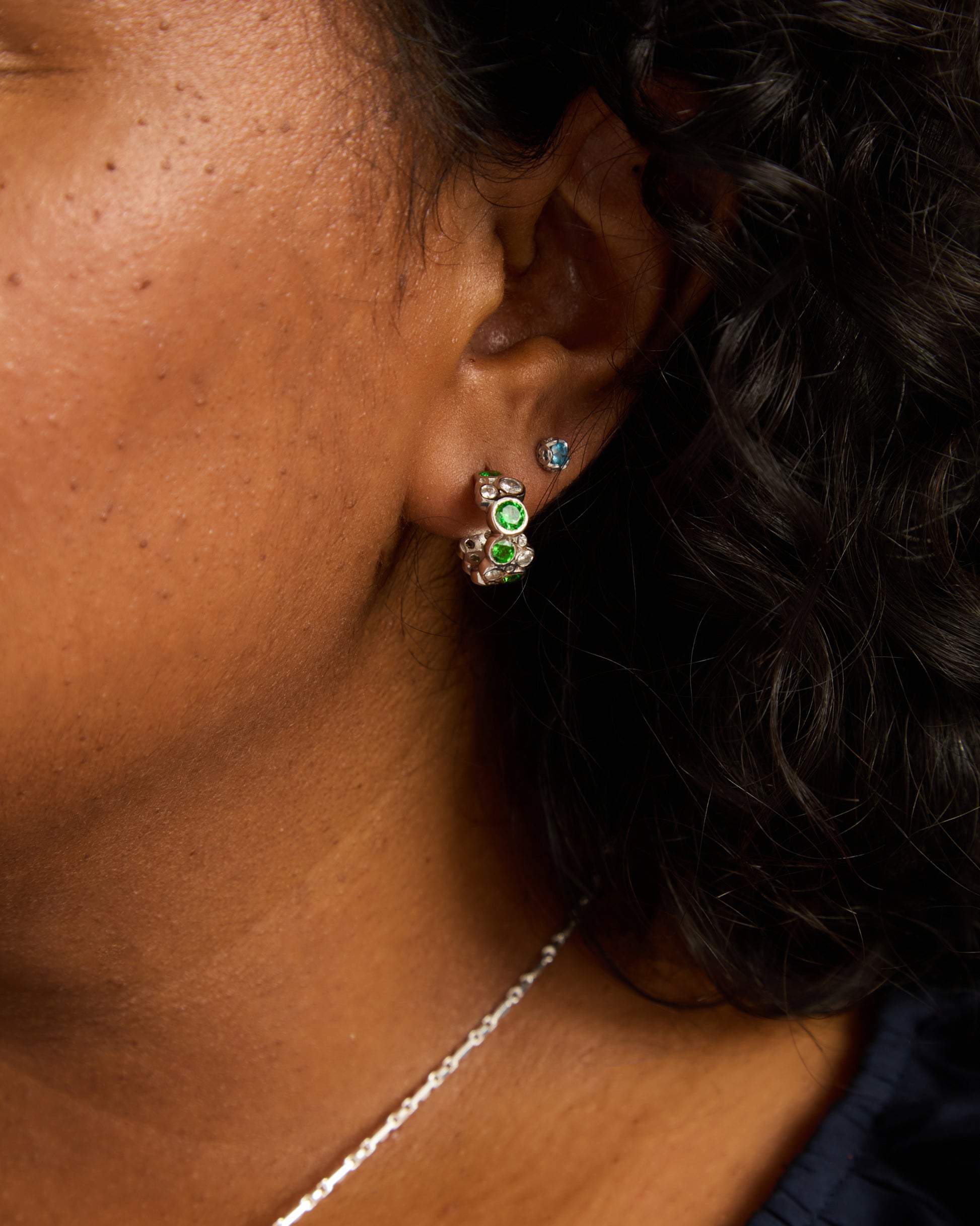 The Bubble Stone Hoops feature allover clusters of green and white zircon set in sterling silver. These handcrafted earrings are great for an occasion or everyday wear.