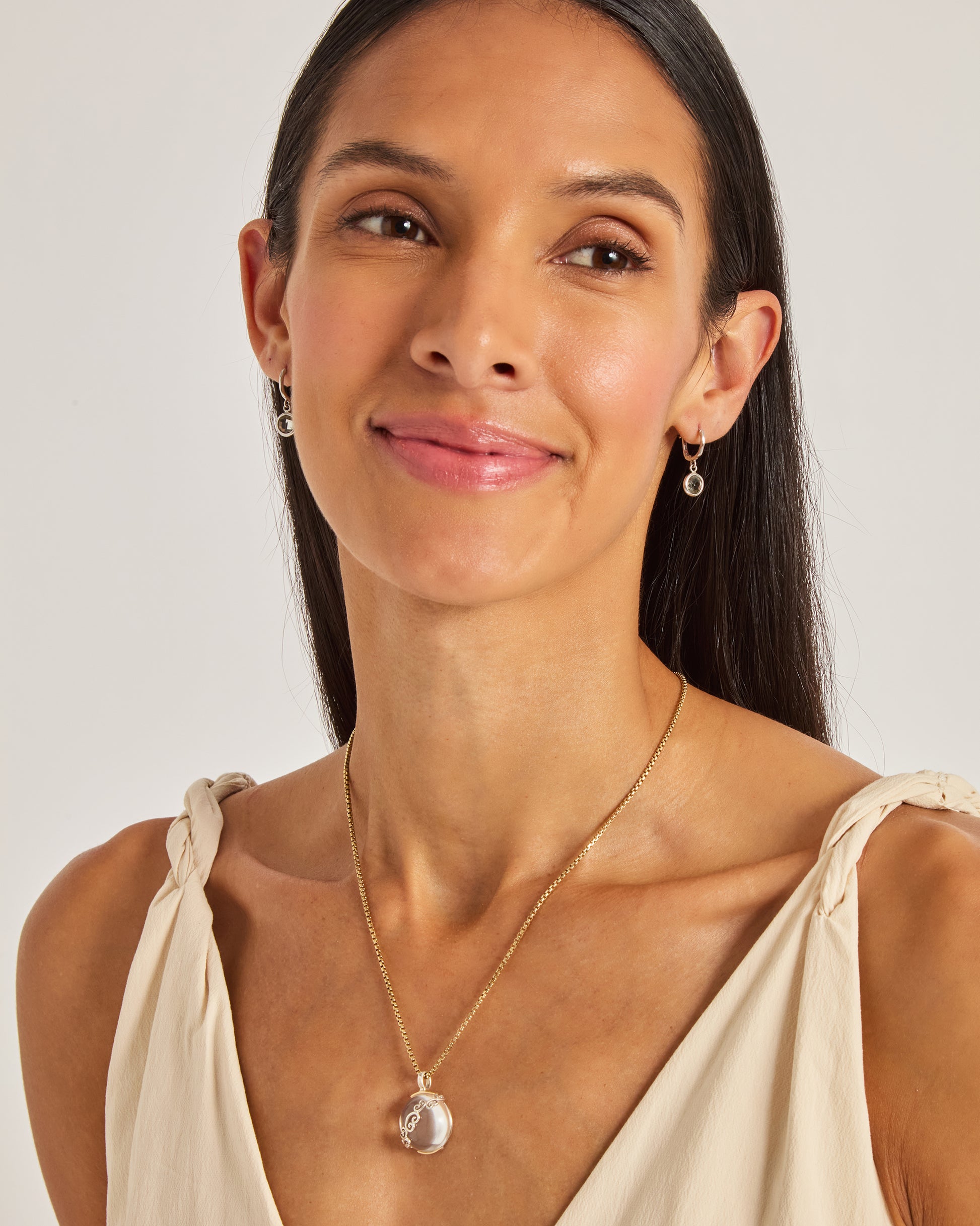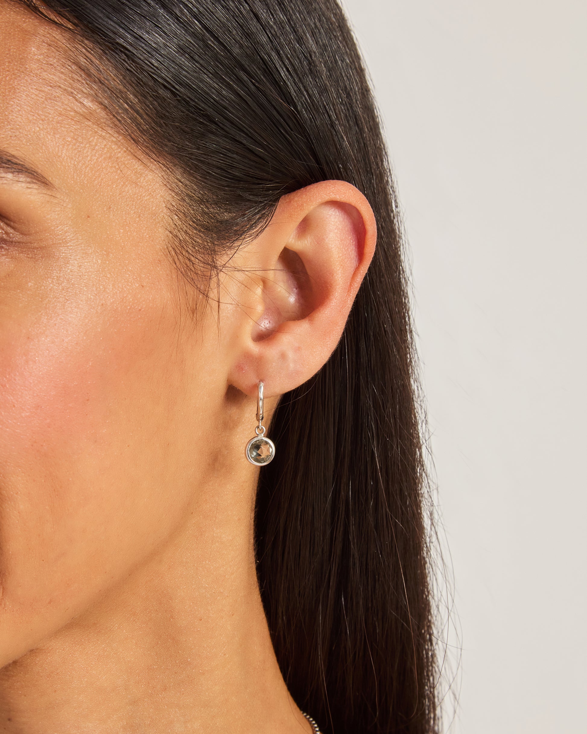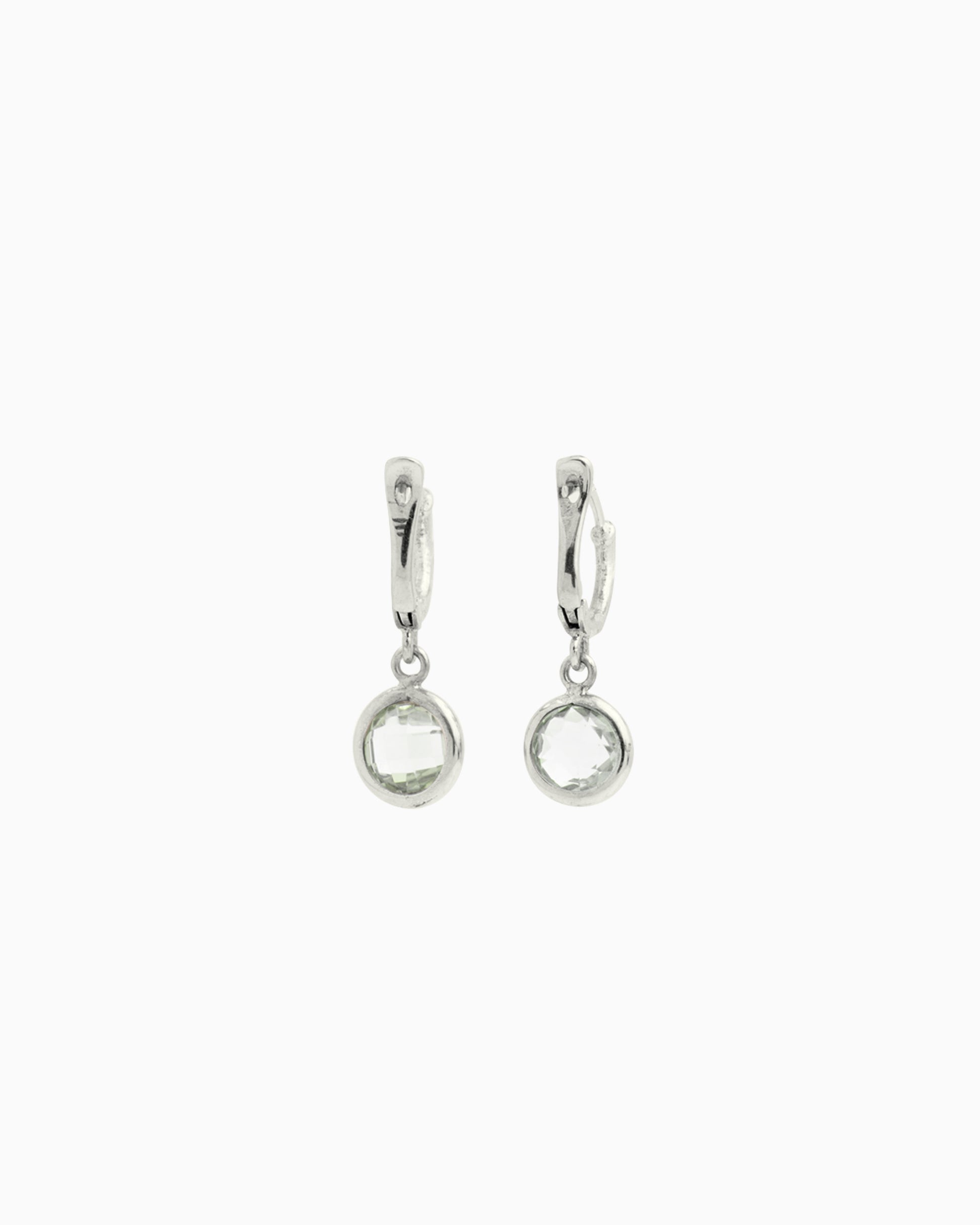 The Circle Stone Huggie showcases a circle faceted prasiolite stone dangling from a huggie hoop earring. Handcrafted in sterling silver, these stunning earrings are the perfect style to add to your collection that can be worn everyday or for a more special occasion.