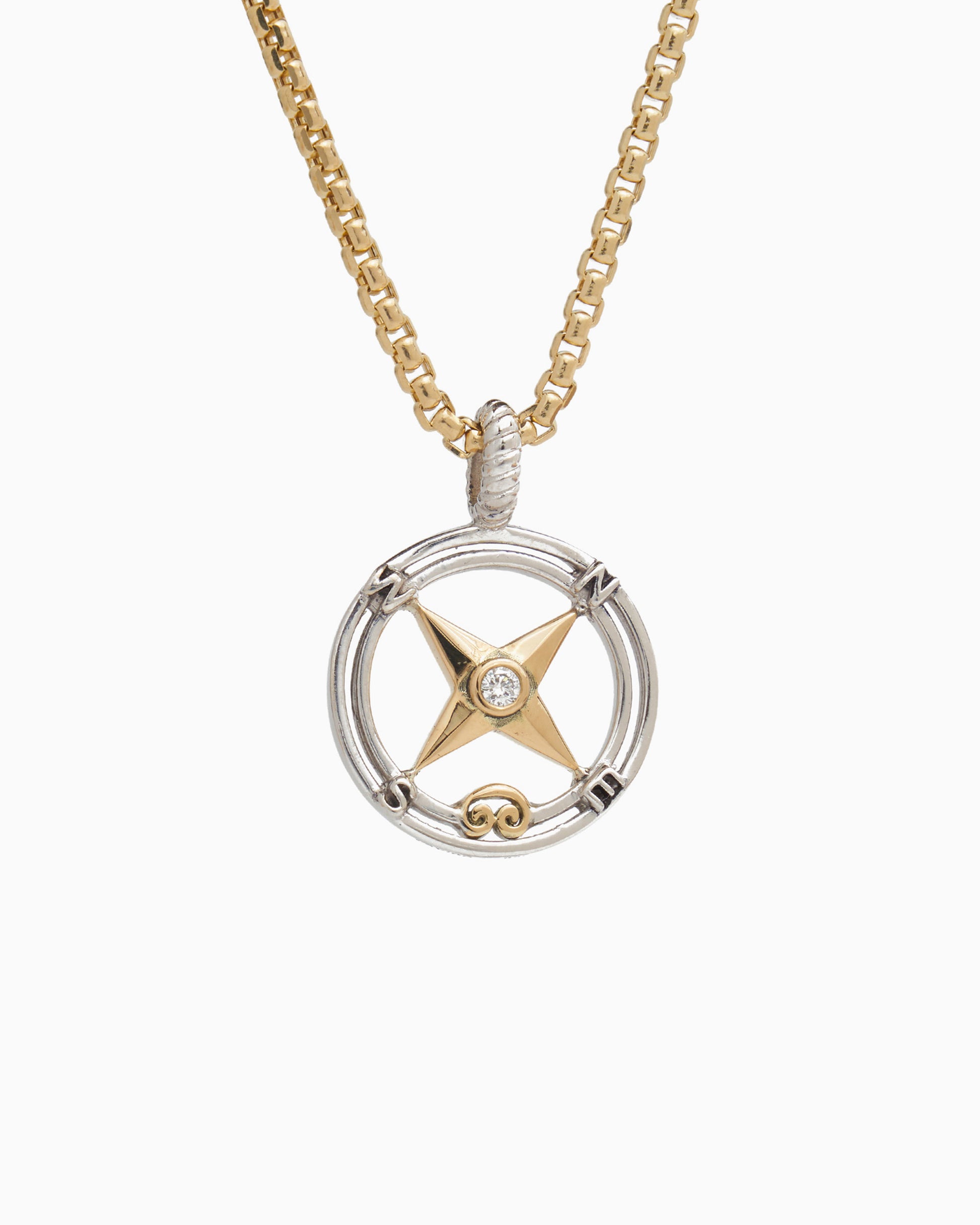 The nautical-inspired Compass Pendant is the perfect reminder of memories cherished and lessons learned. This pendant showcases a 14K solid gold compass rose accentuated with a faceted diamond at its heart. Take notice of the twisted detailing on the bail which adds a playful touch. Pair with your favorite chain, sold separately.