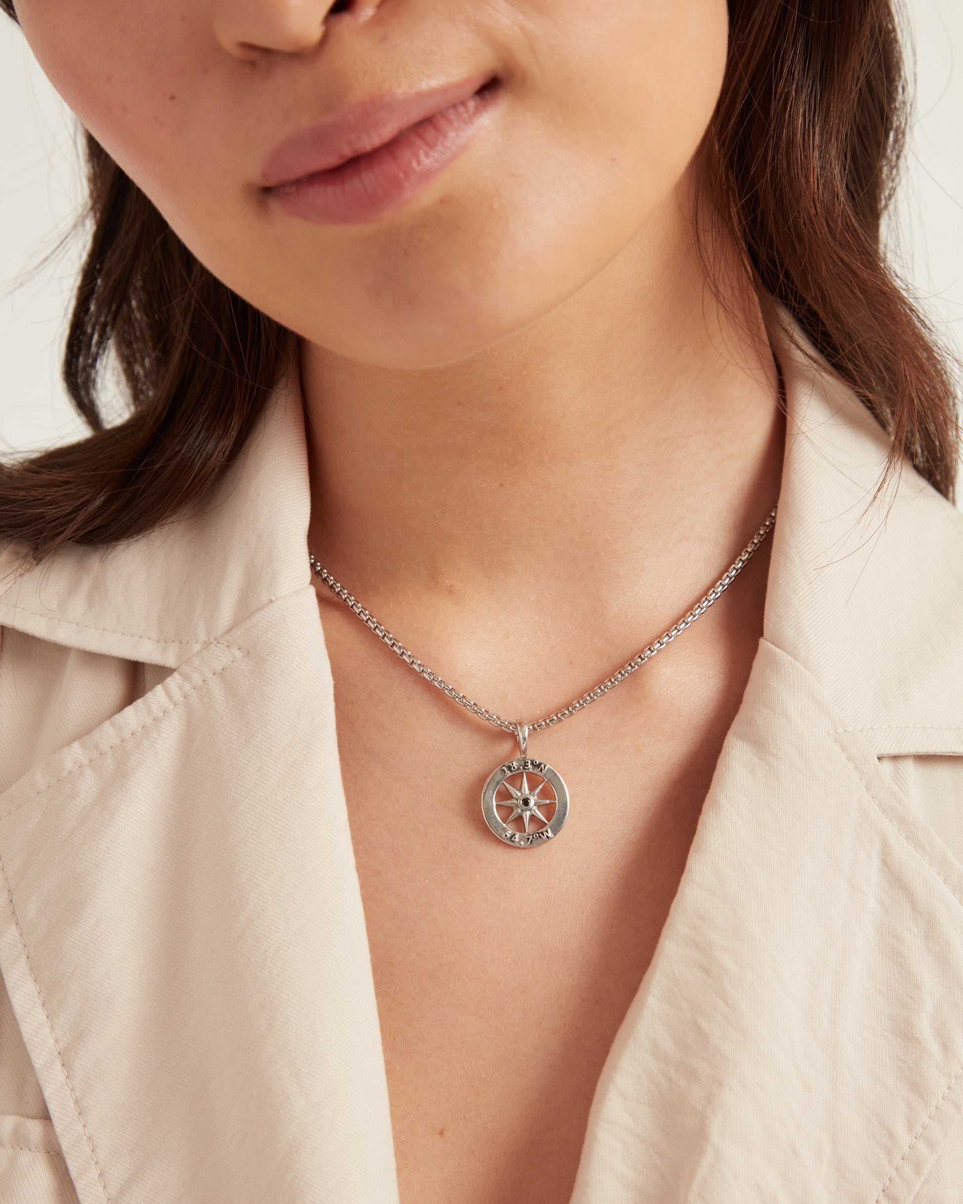 The Compass Pendant is a great addition to your St. John inspired jewelry collection. Adorned with the island's coordinates and a faceted black zircon stone at its center, this pendant serves as a meaningful symbol. A compass represents cherished memories and valuable life lessons, making it a perfect reminder of your unique journey. Pair with your favorite chain, sold separately.