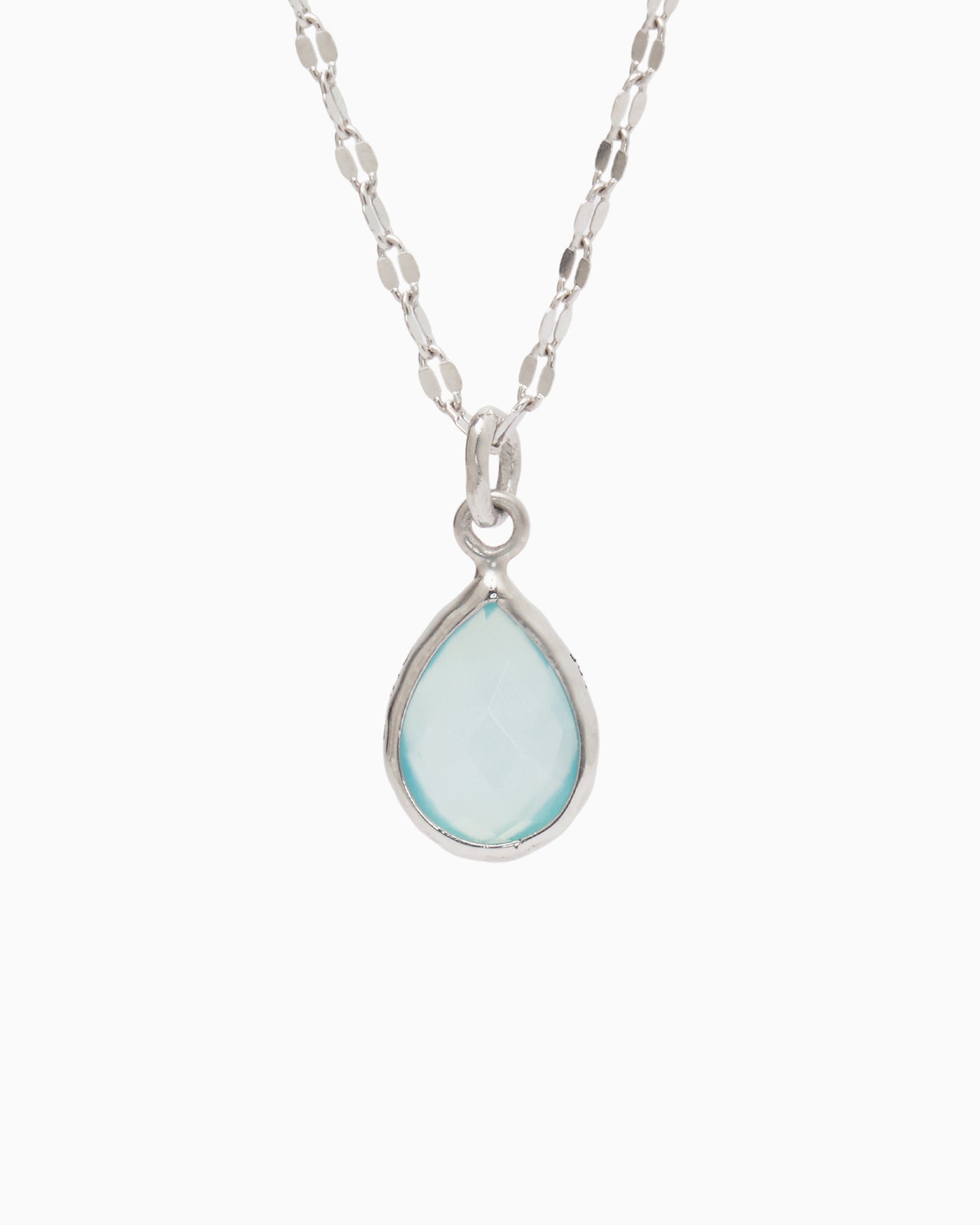 The Dewdrop Stone Pendant boasts a distinctively timeless design, featuring a pear-shaped blue chalcedony stone cradled in sterling silver. Whether worn on its own for understated elegance or paired with a pair of Dewdrop Stone Earrings for a coordinated look, this pendant adds a touch of sophistication to any outfit. Pair with your favorite chain, sold separately.