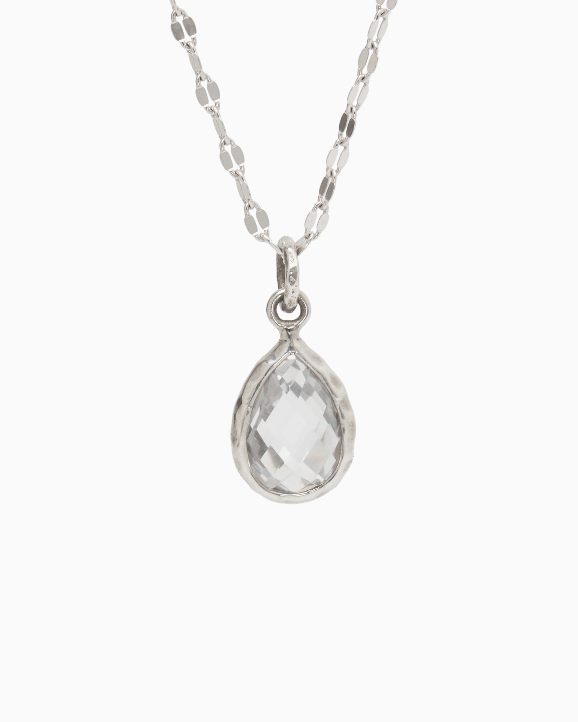 The Dewdrop Stone Pendant boasts a distinctively timeless design, featuring a pear-shaped white topaz stone cradled in sterling silver. Whether worn on its own for understated elegance or paired with a pair of Dewdrop Stone Earrings for a coordinated look, this pendant adds a touch of sophistication to any outfit. Pair with your favorite chain, sold separately.