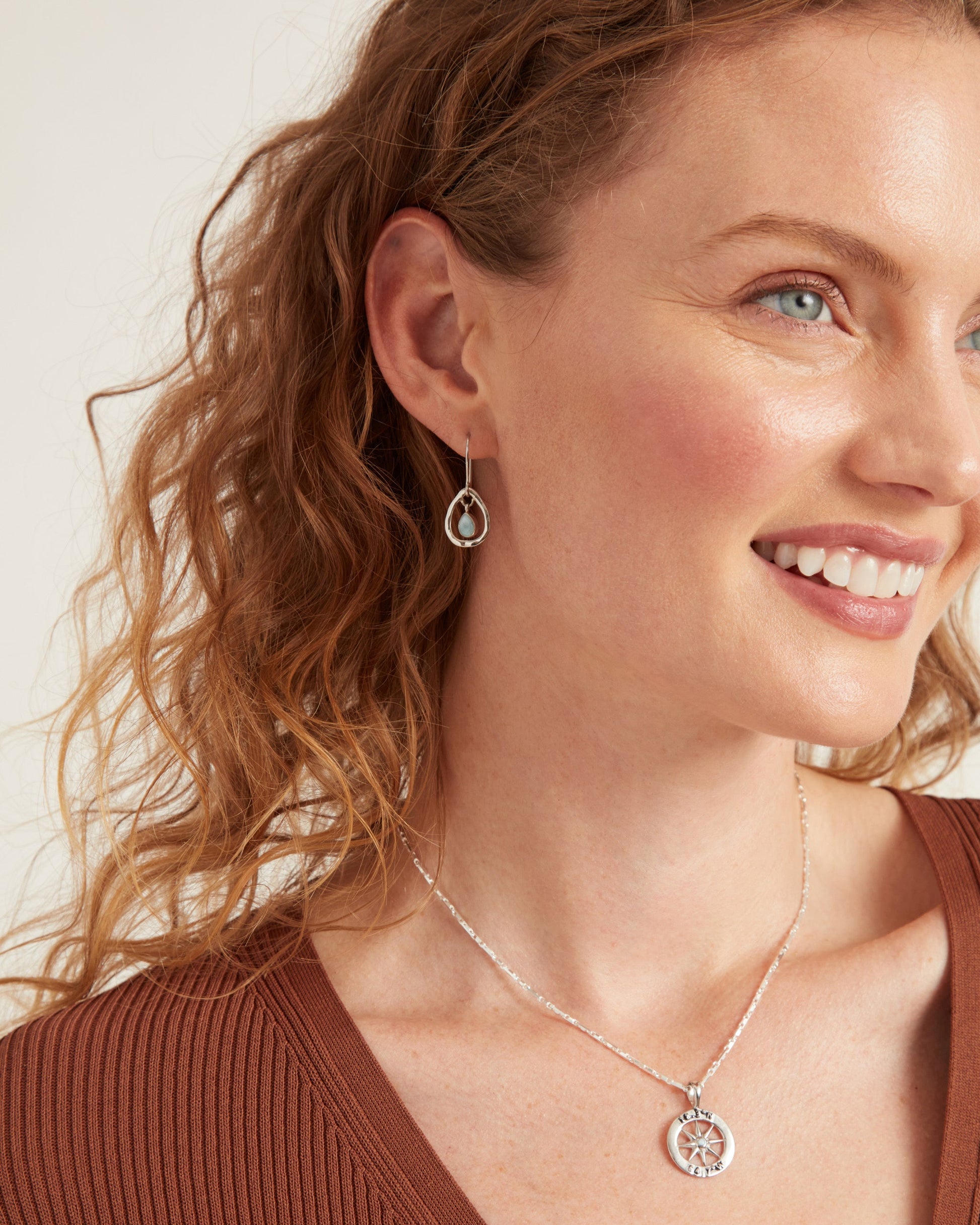 The Double Teardrop Earrings feature a gently hammered sterling silver teardrop shape adorned with a larimar cabochon. Handcrafted and island inspired, these are the perfect addition to any look. The teardrop is perfect for those who are bold and walks to the beat of their own heart, with a flair for romance and elegance.