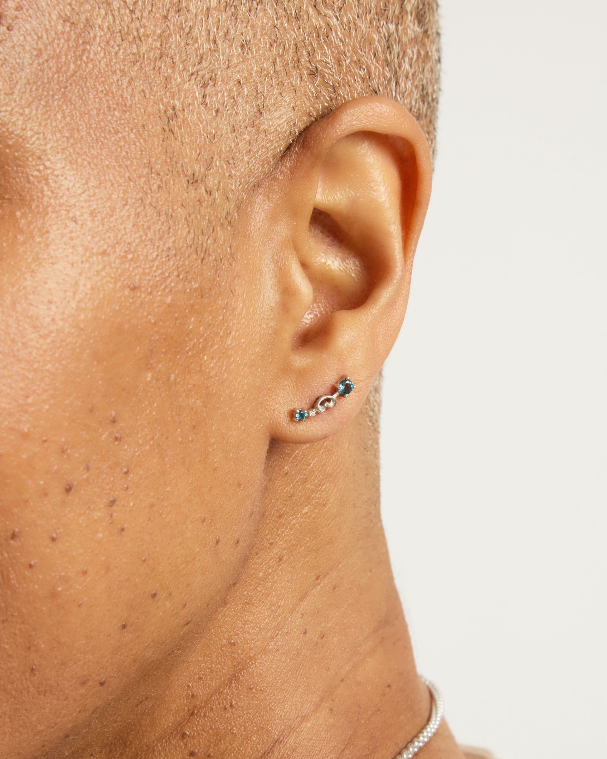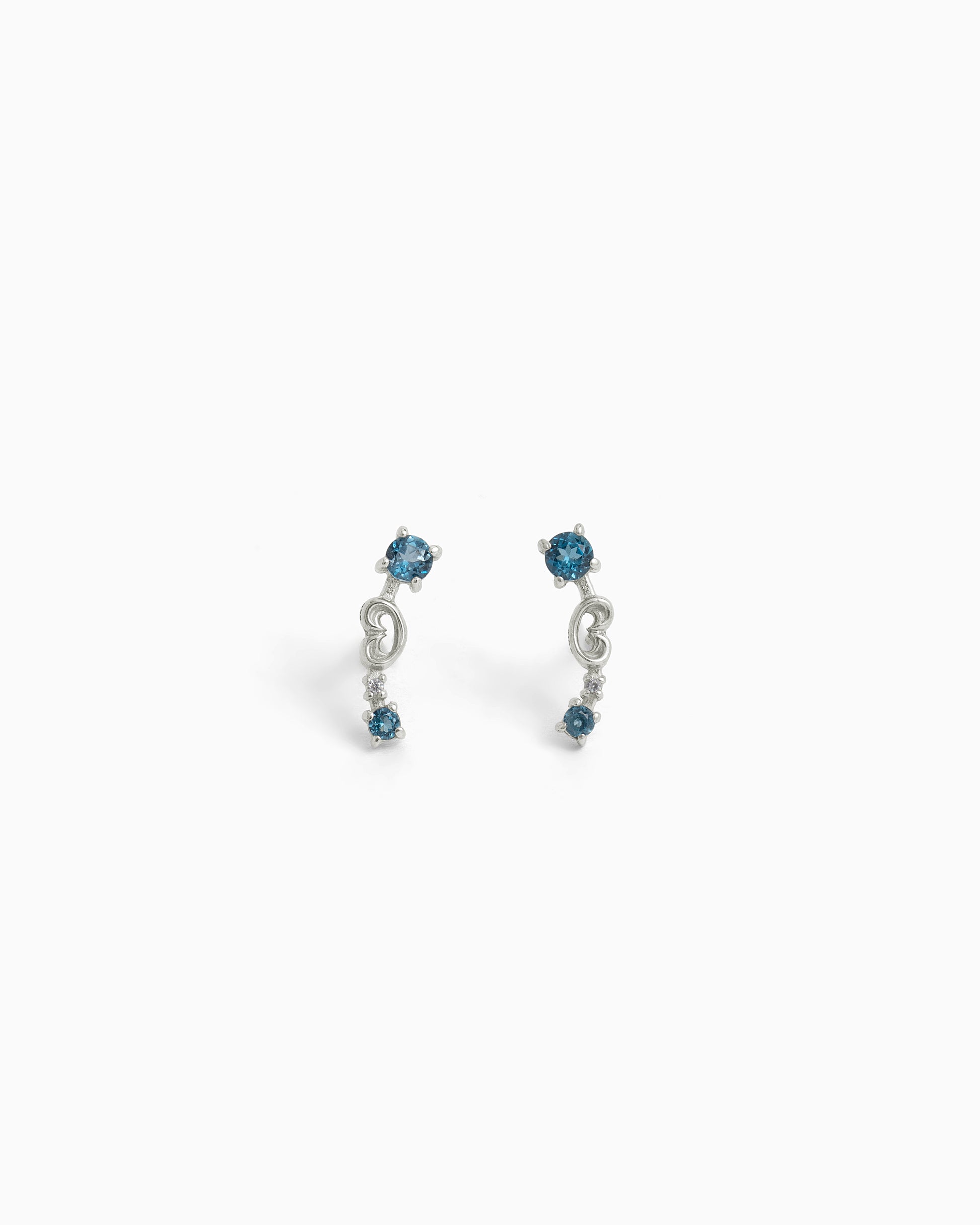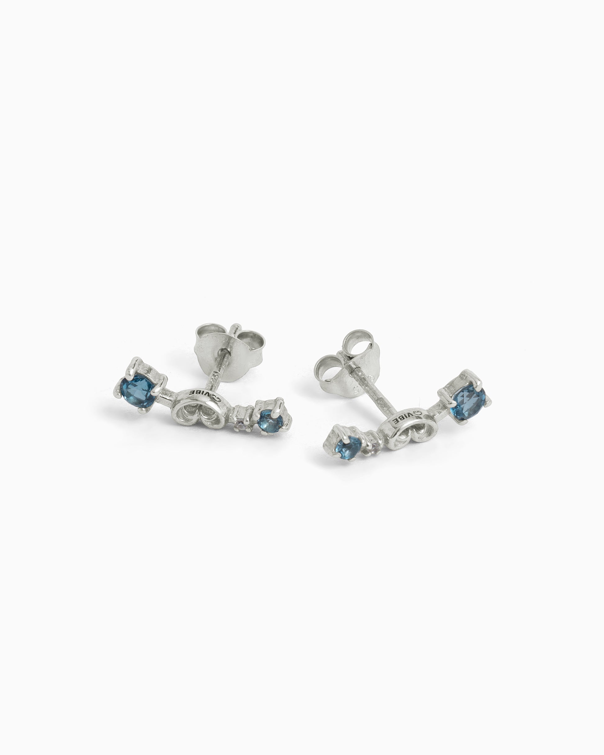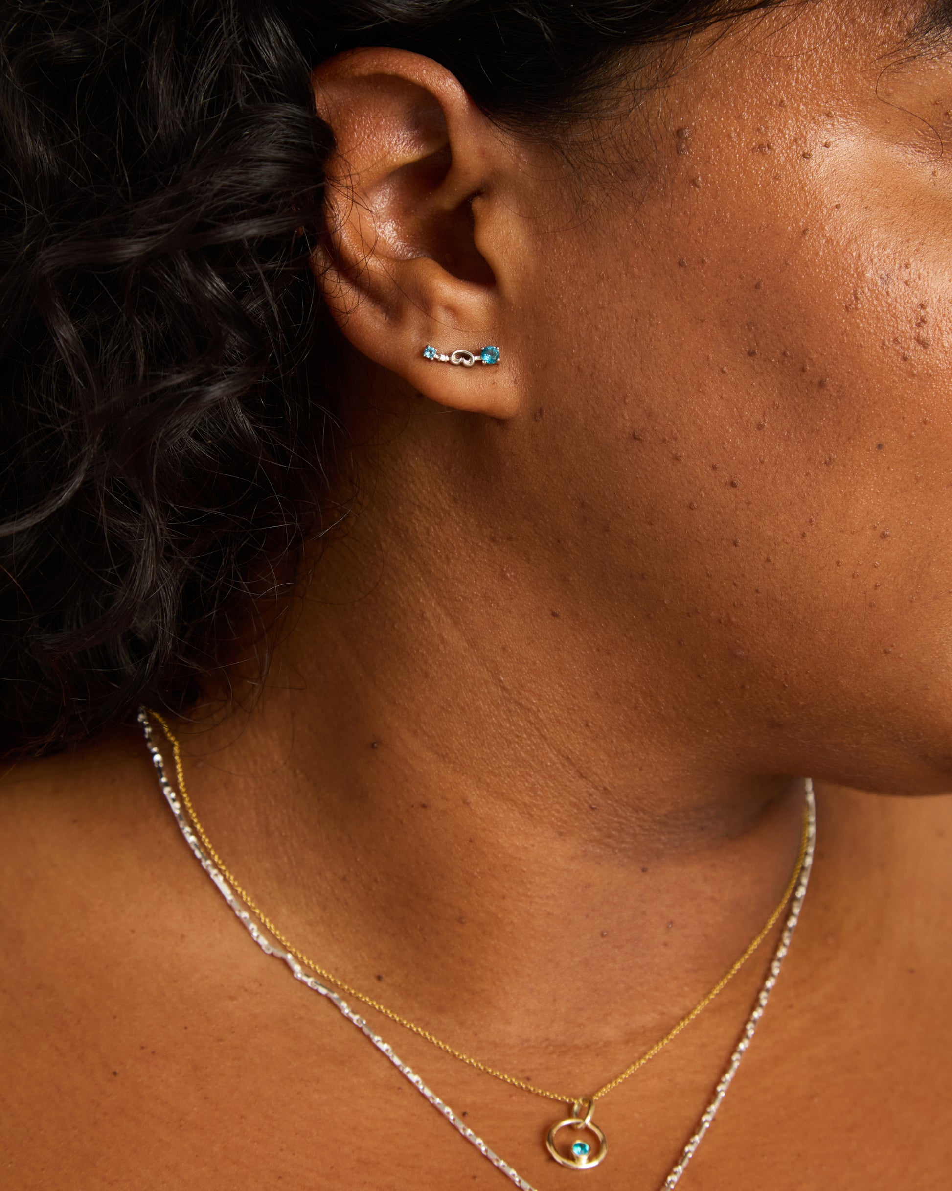 The Dragonfly Ear Climber Studs feature three faceted stones surrounding a signature petroglyph. These handcrafted sterling silver studs will add more impact to your lobes than a traditional stud.