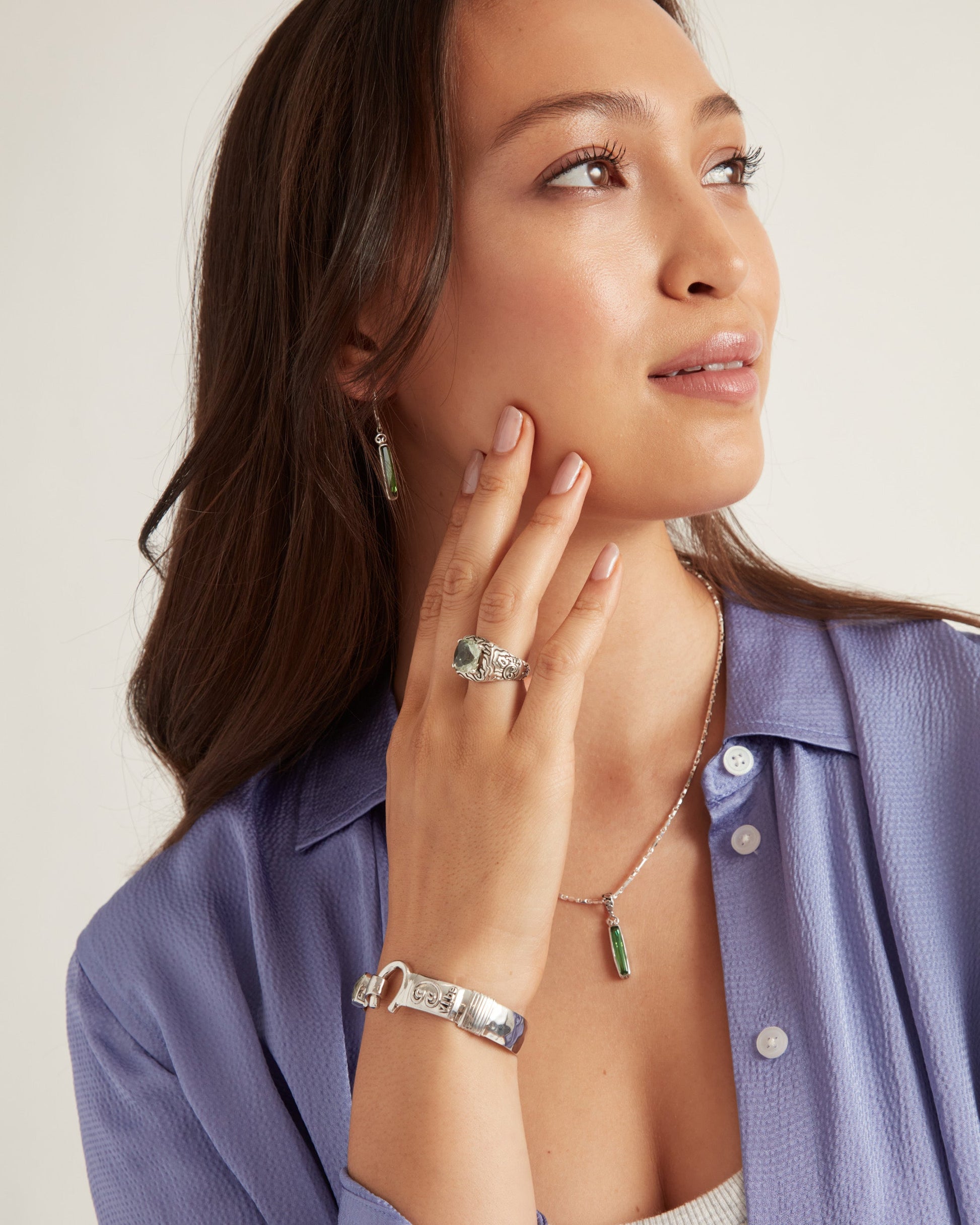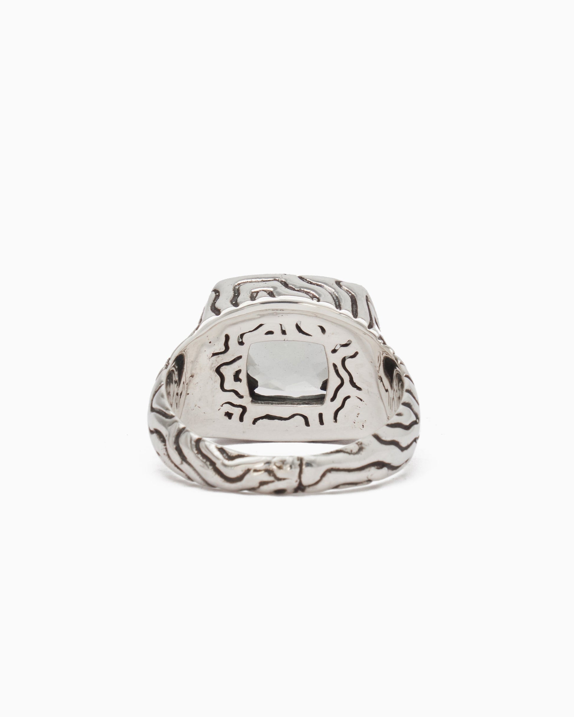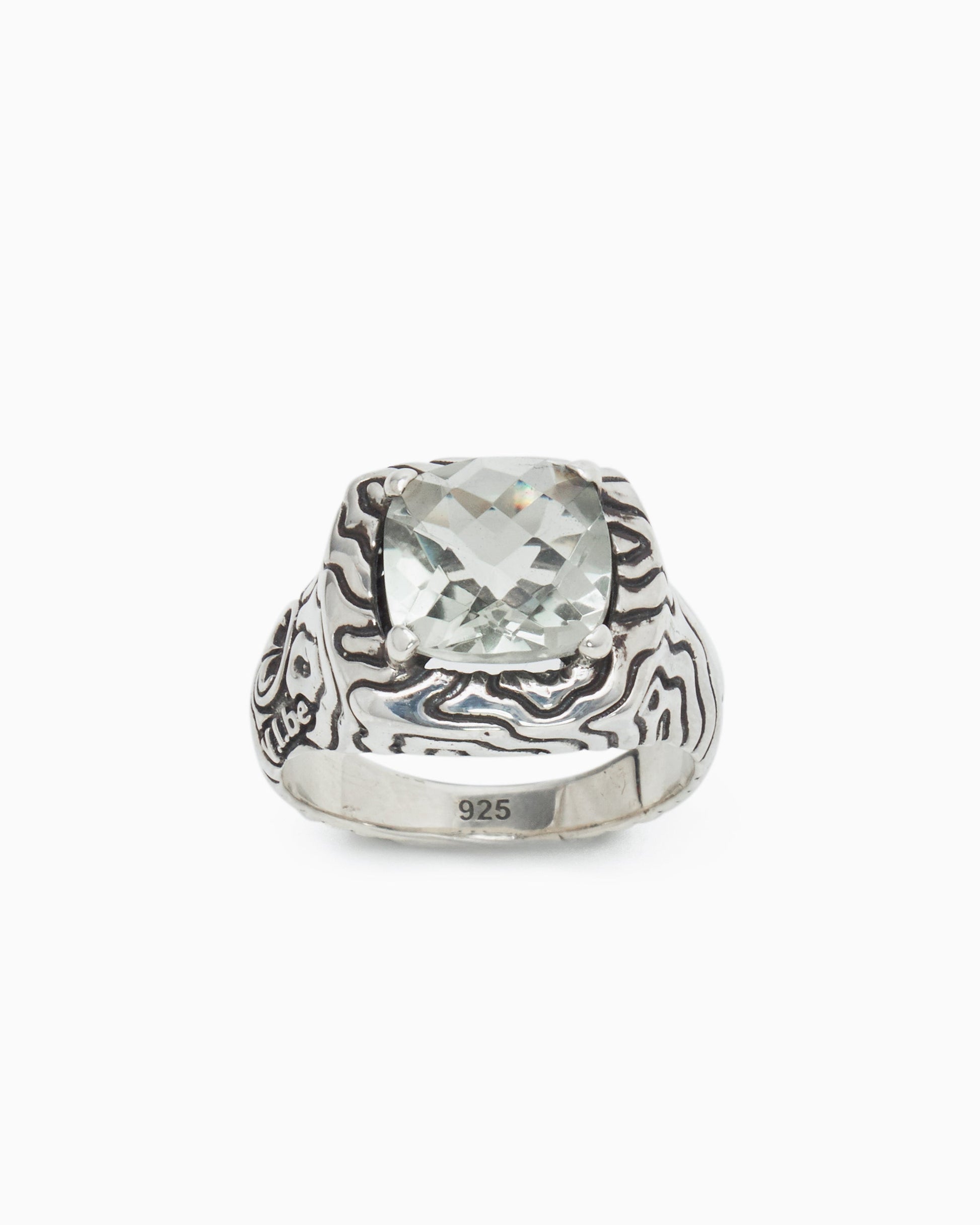 The Gemstone Ring is a captivating piece that combines island-inspired elements with enduring elegance. Handcrafted from sterling silver, it showcases our distinctive reef texture and highlights a mesmerizing faceted prasiolite stone at its core, making it a timeless statement accessory.