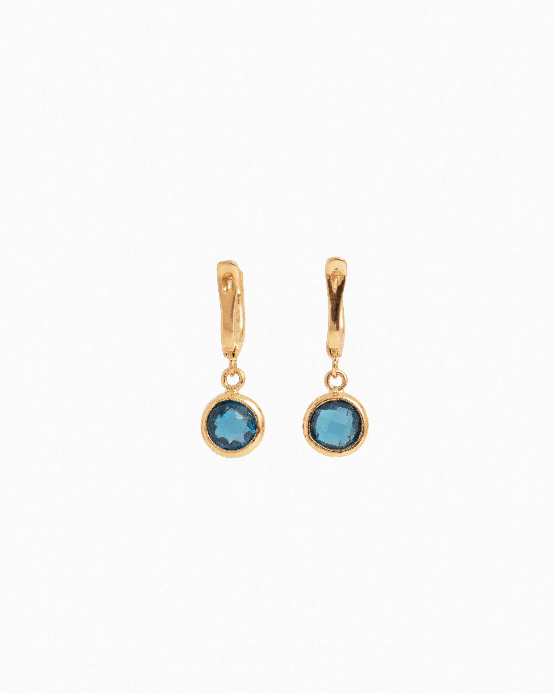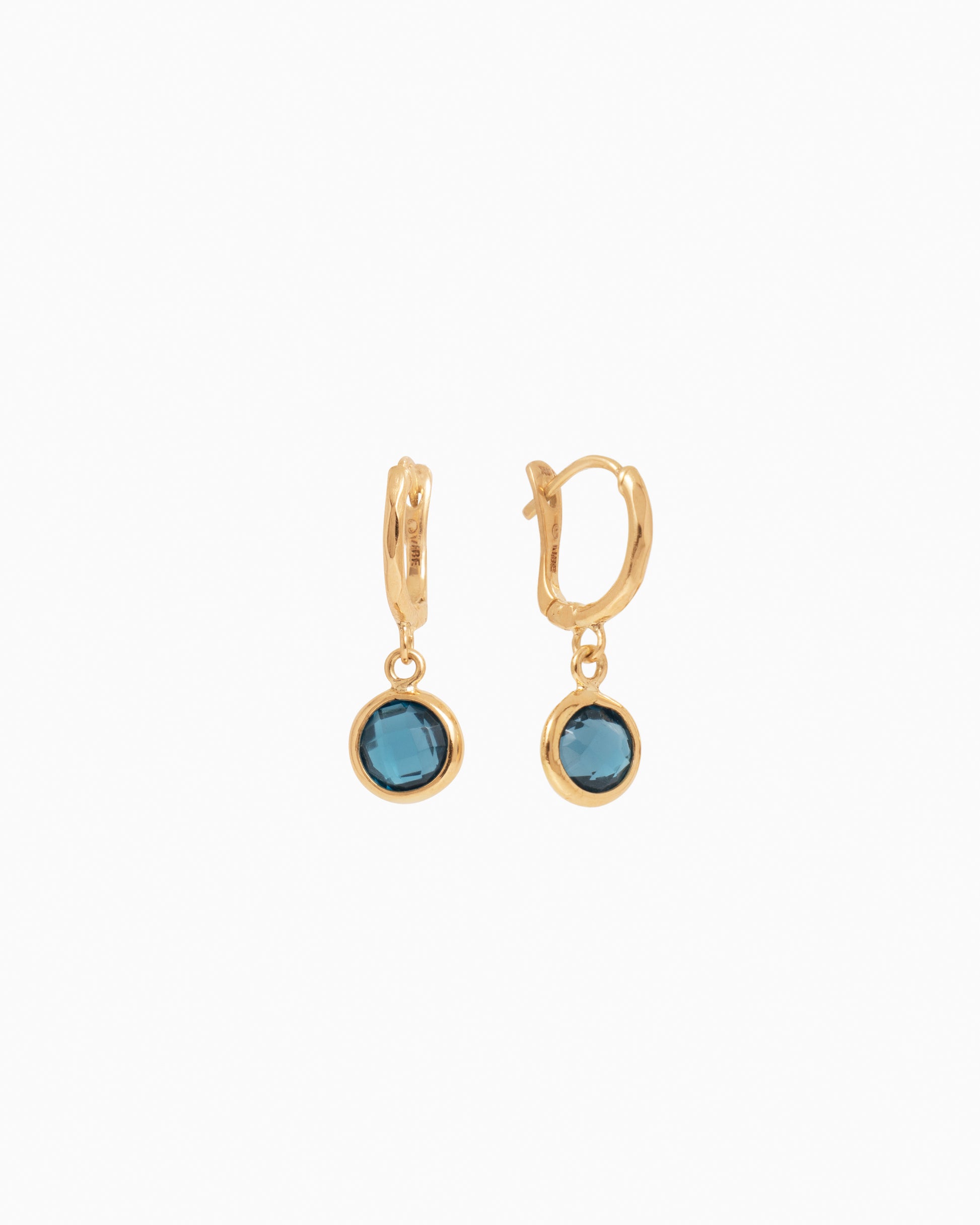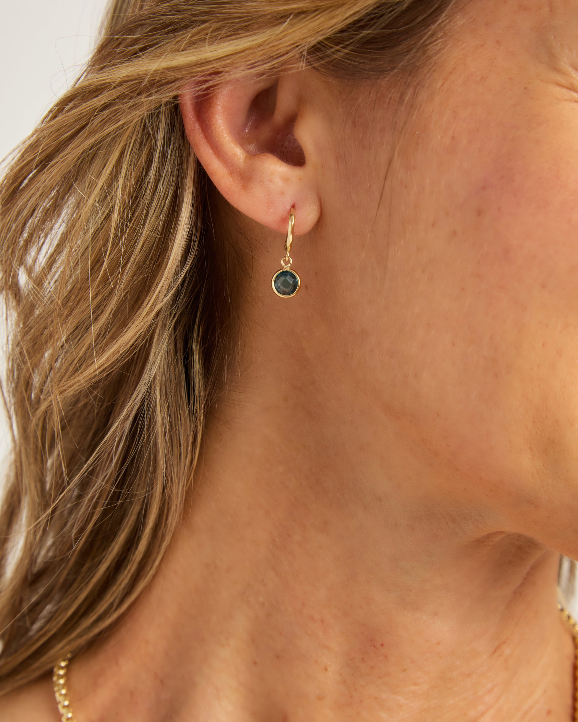 The Circle Stone Huggie showcases a circle faceted London blue topaz stone dangling from a huggie hoop earring. Handcrafted in 14K solid gold, these stunning earrings are the perfect style to add to your collection that can be worn everyday or for a more special occasion. Add the perfect pop of color to you look with these huggie earrings.