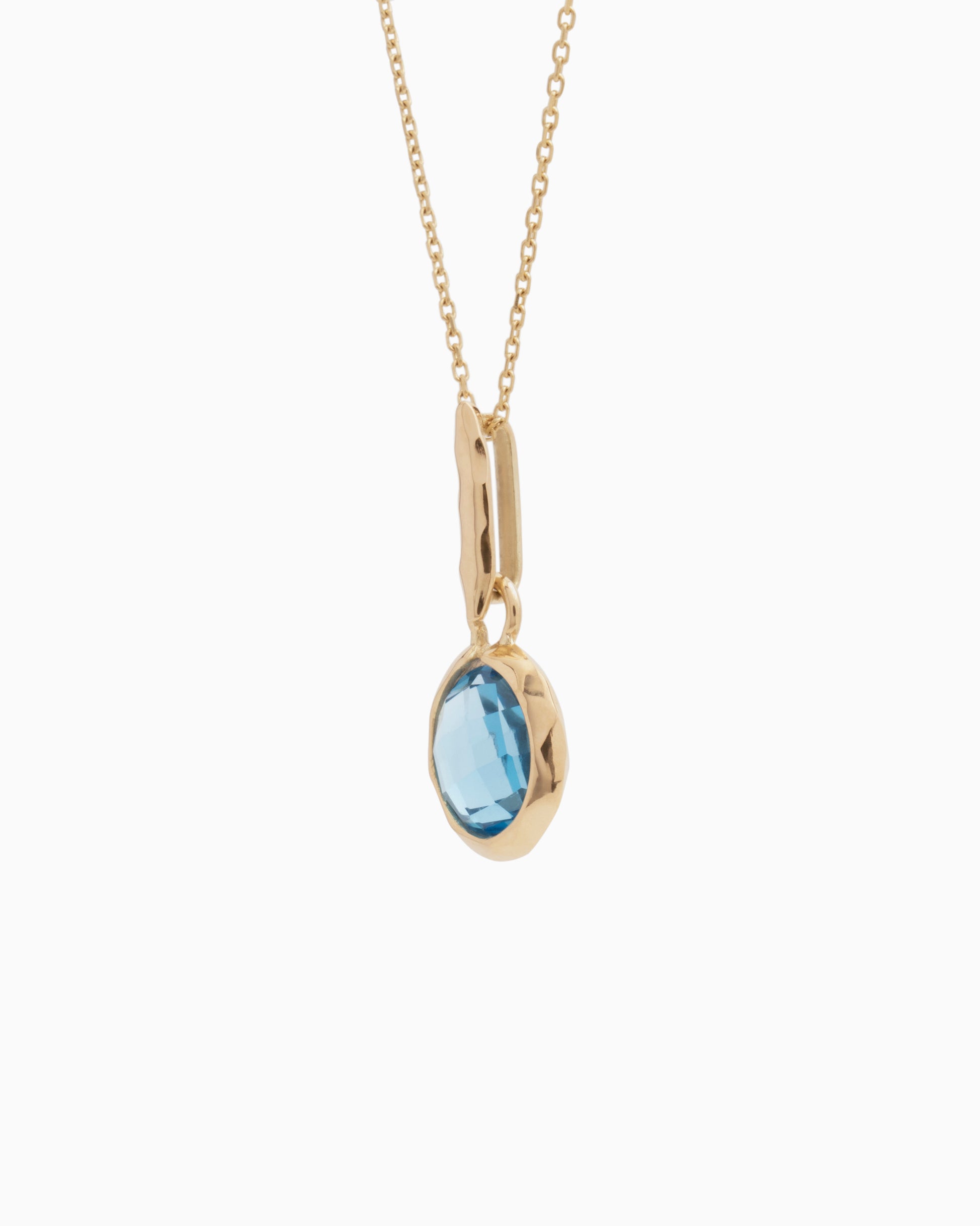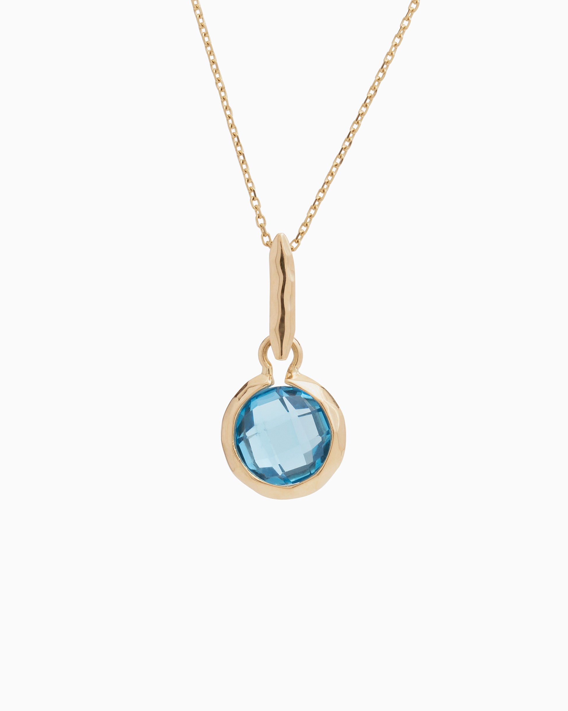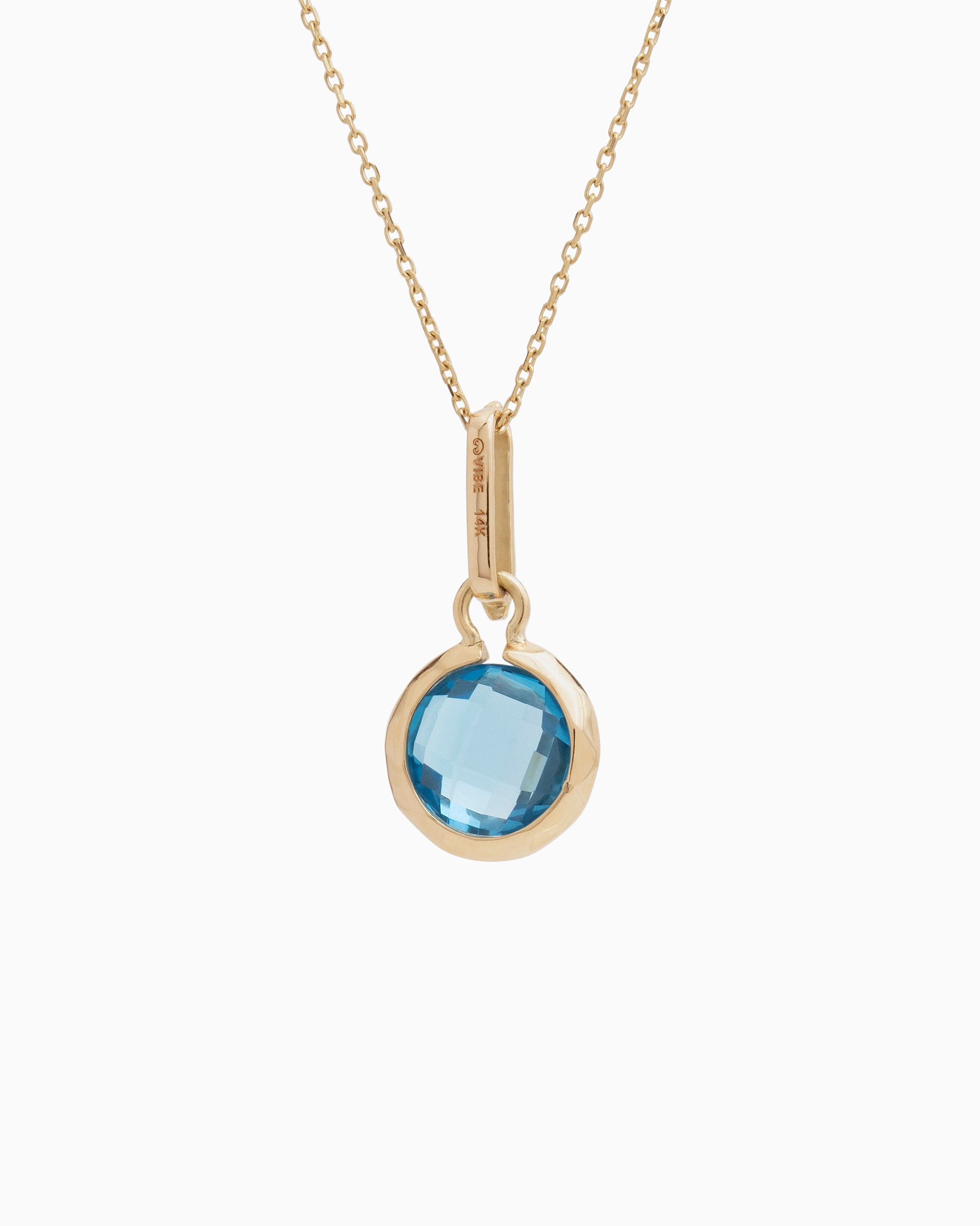 This simple yet stylish Circle Stone Pendant features 14K solid gold encompassing a faceted circle Hampton blue topaz stone visible from both sides of the pendant. This piece is the perfect addition to your everyday jewelry collection. Wear this style alone for a sophisticated look or stack with others to create a statement look. Pair with your favorite chain, sold separately.